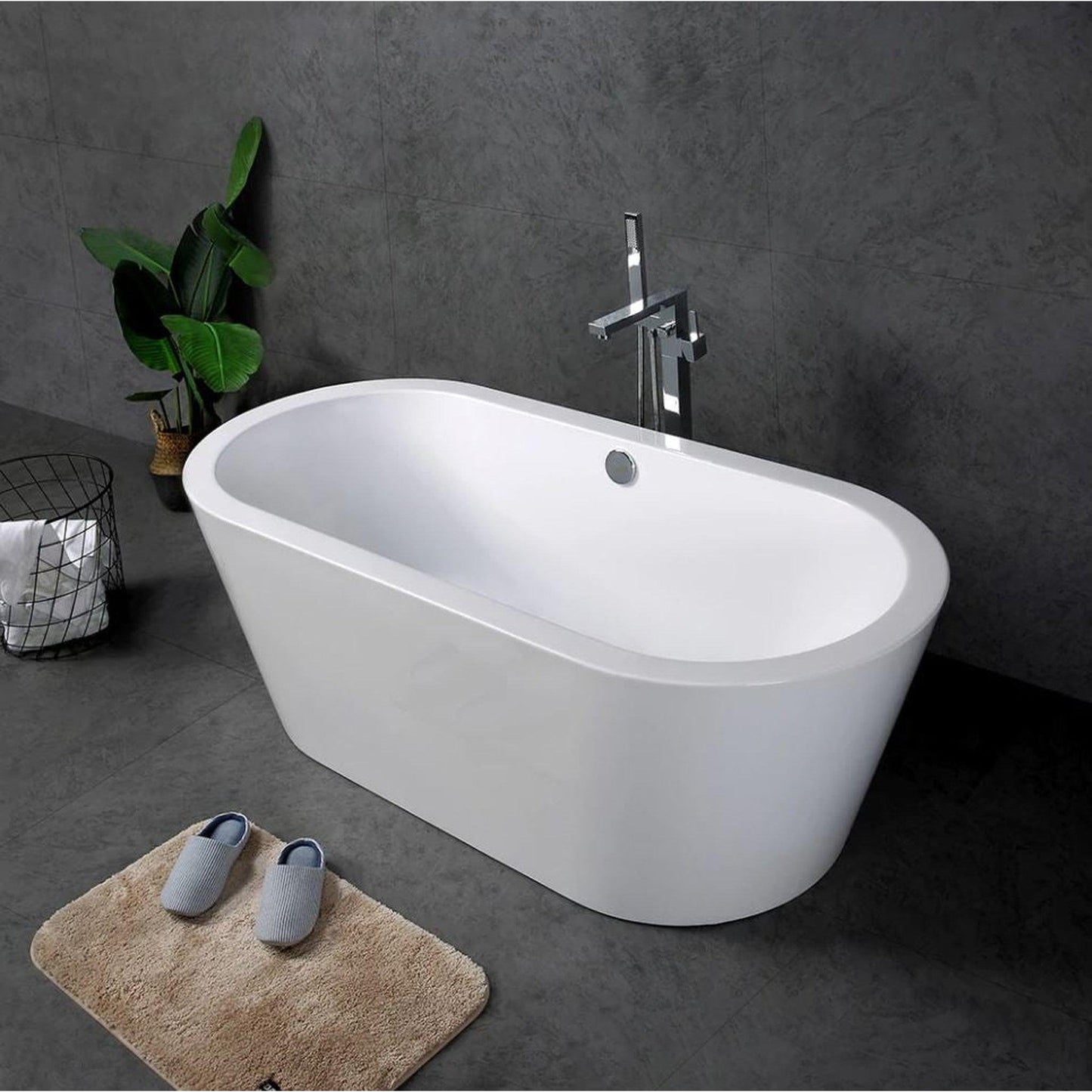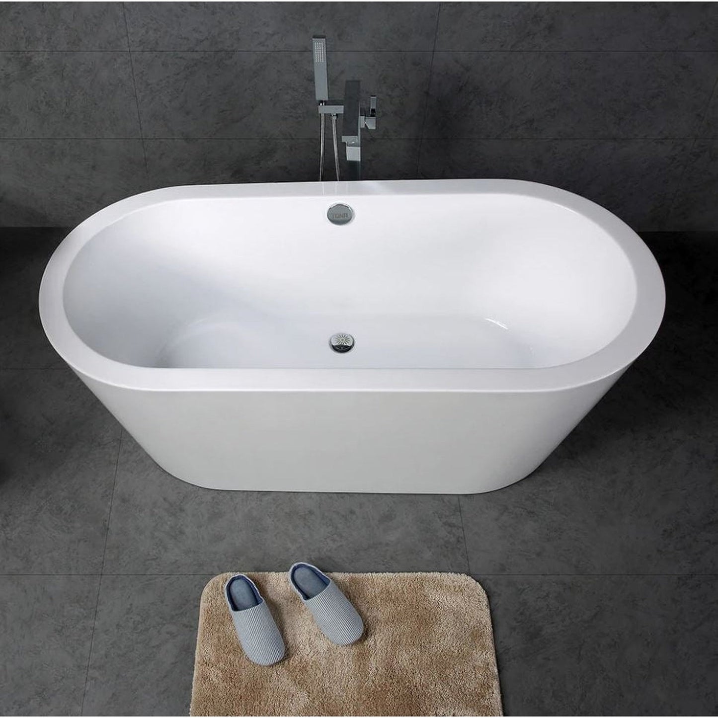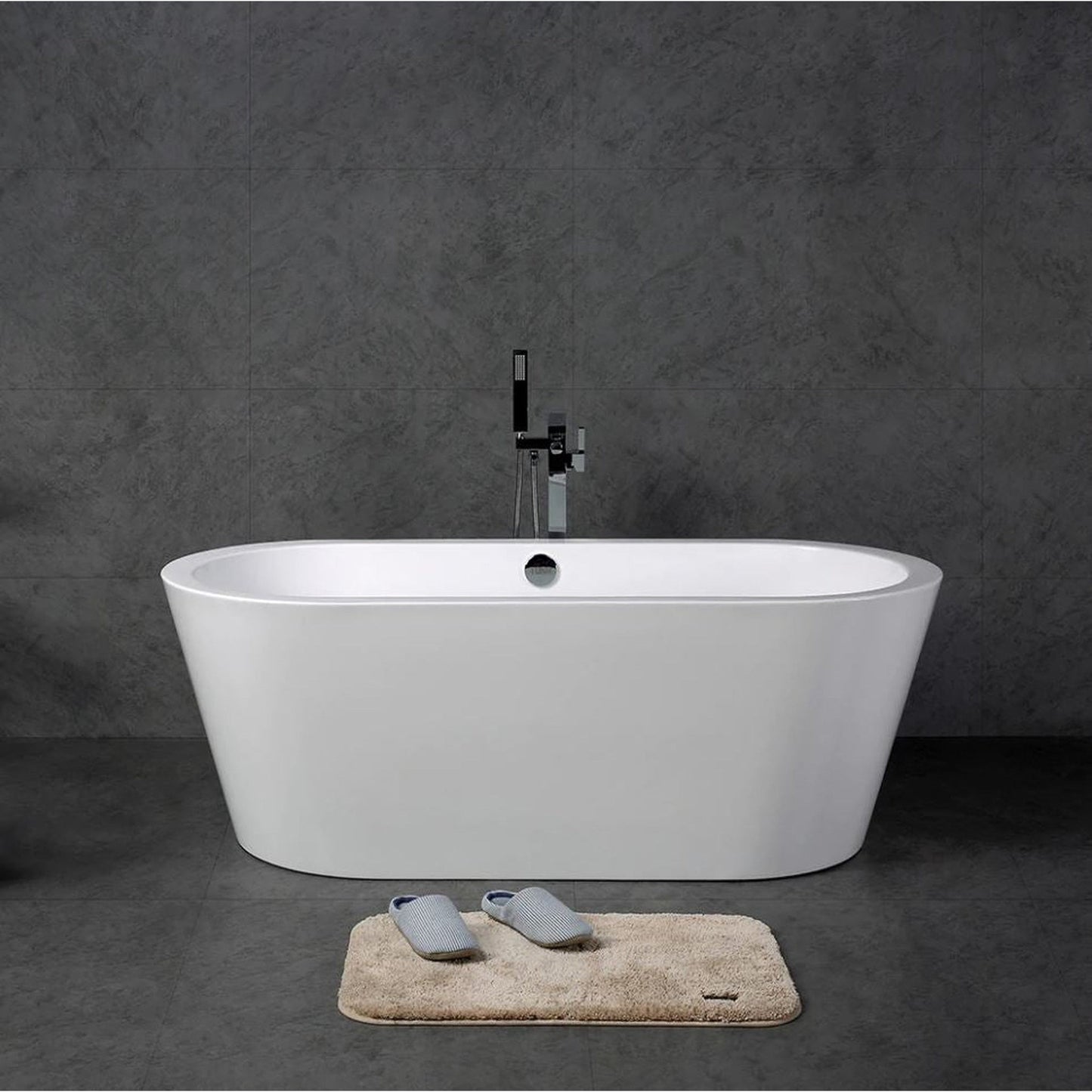 TONA Spree 71" Glossy White Acrylic Freestanding Bathtub With Chrome Drain Cover and Overflow Cover
