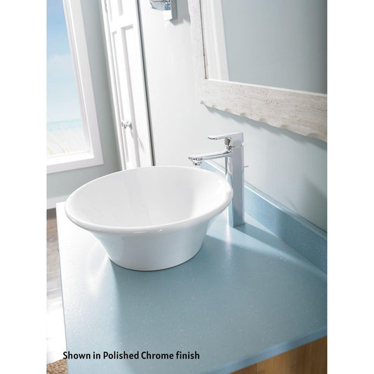 This sleek and simple faucet features a flexible hose connection, washerless ceramic disk valve (see Smartfact below) and pop-up drain. ADA compliant.