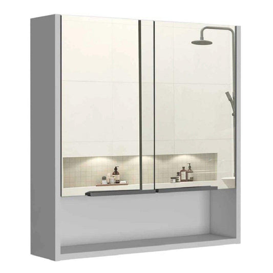 TUHOME Jaspe 24" x 25" White Wall-Mounted Mirror Medicine Cabinet With Wide-Open Shelf