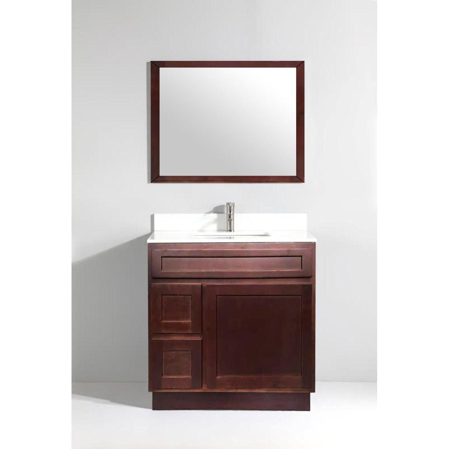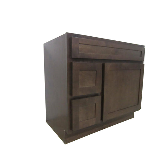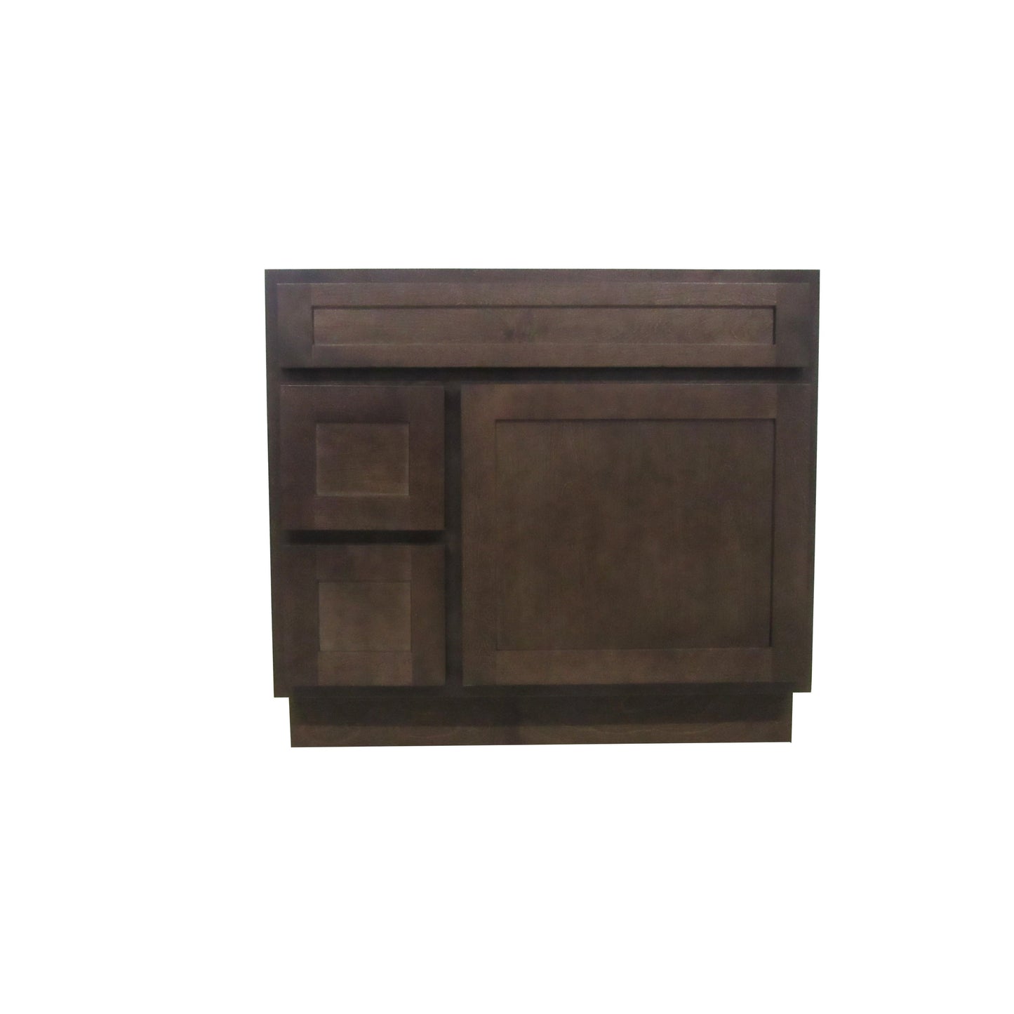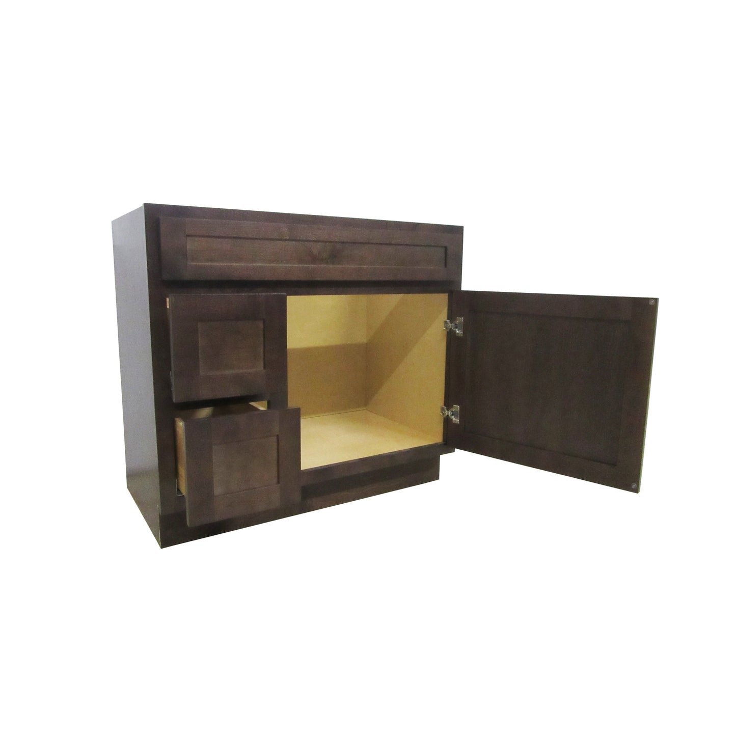 Vanity Art 36" Brown Freestanding Solid Wood Vanity Cabinet With Single Soft Closing Door and 2 Left Drawers