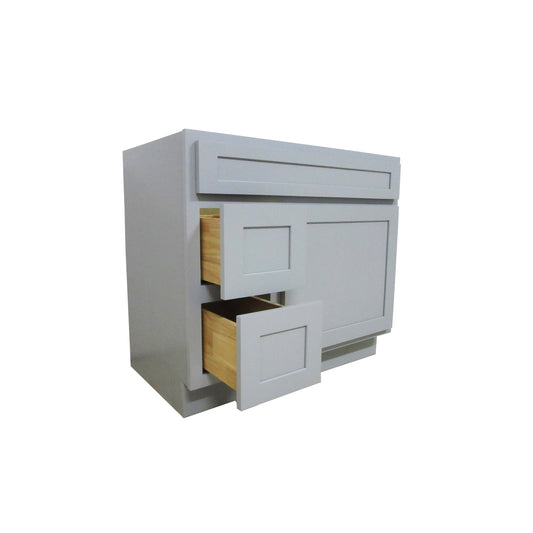 Vanity Art 36" Gray Freestanding Solid Wood Vanity Cabinet With Single Soft Closing Door and 2 Left Drawers
