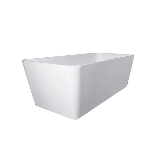 Vanity Art 59" Matte White Solid Surface Resin Stone Freestanding Soaking Tub With Slotted Overflow and Pop-up Drain