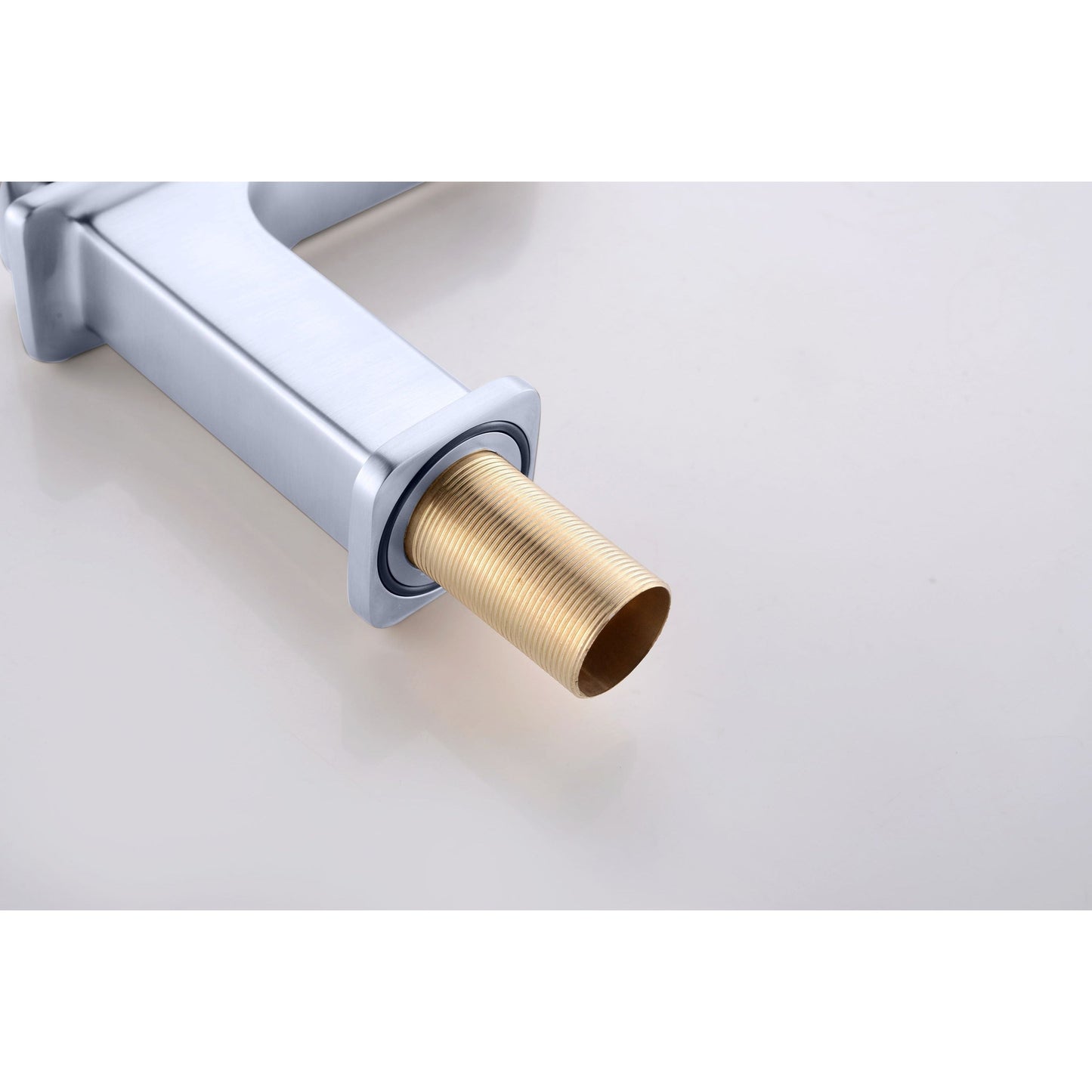 - Splash-Free Aerator offers smooth straight flow, reduces noise and waste, and can be removed to clean.