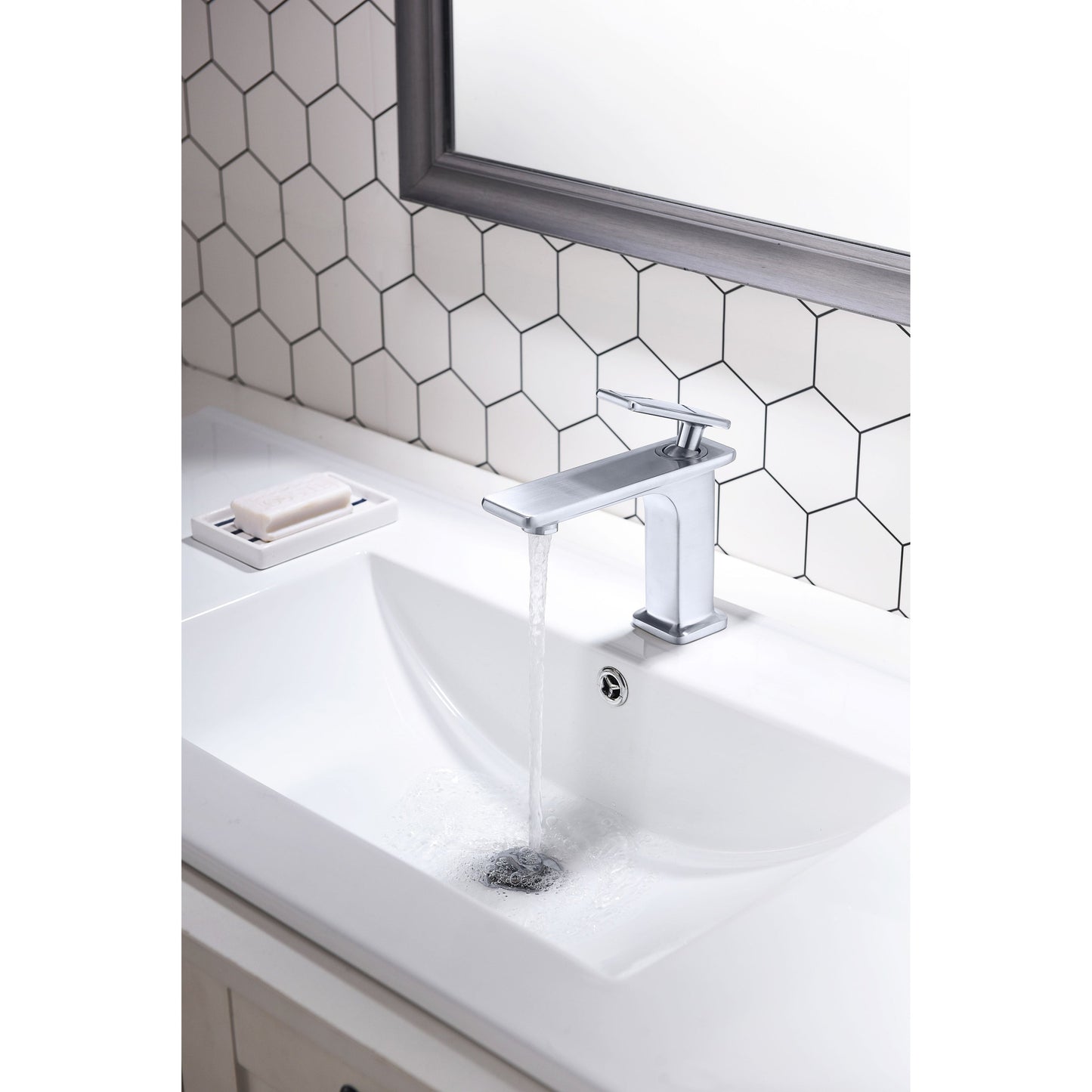 Highly reflective chrome bathroom sink faucet dazzling mirror-like look to decorate with home, hotel, commercial bathroom, and cloakroom. Resist rust, corrosion, and tarnishing, easy to clean. Single lever design for effortless temperature & flow control solid brass construction and metal handle ensure high-pressure resistant. Multi-layer chrome & brushed nickel finishes durable and IAPMO Certified. Our bathroom vessel faucet has a 1-year manufacturer warranty.