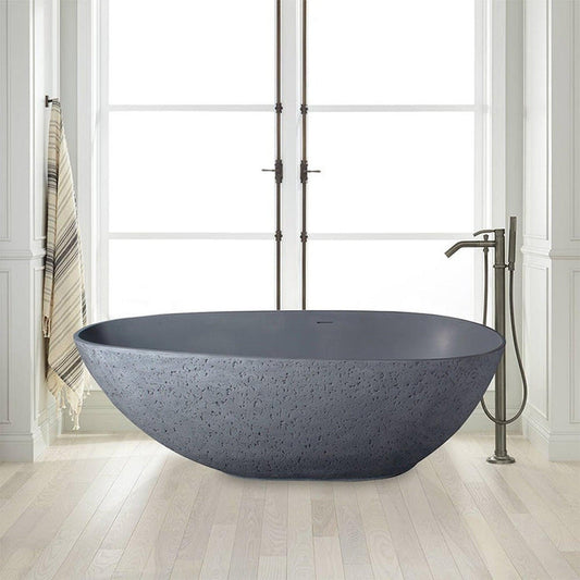 Vanity Art 67" W x 22" H Gray Solid Surface Resin Stone Freestanding Soaking Bathtub With Slotted Overflow and Pop-up Drain