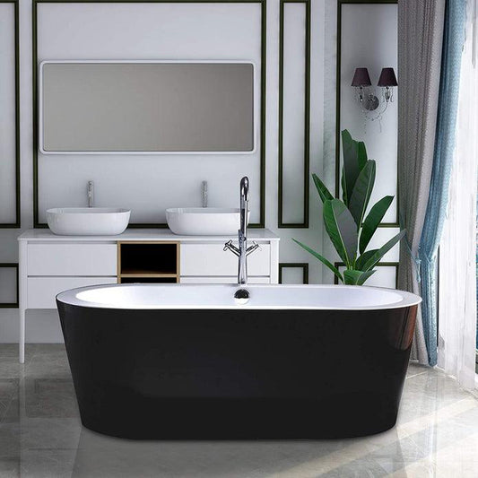 Vanity Art 67" x 32" Black Acrylic Modern Stand Alone Soaking Tub With Polished Chrome Pop-up Drain, Round Overflow and Flexible Drain Hose