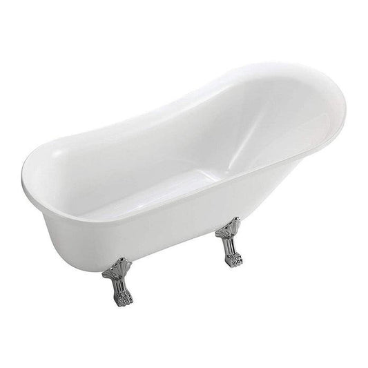 Vanity Art 69" W x 30" H White Acrylic Freestanding Claw Foot Bathtub With Polished Chrome Pop-up Drain and Flexible Drain Hose