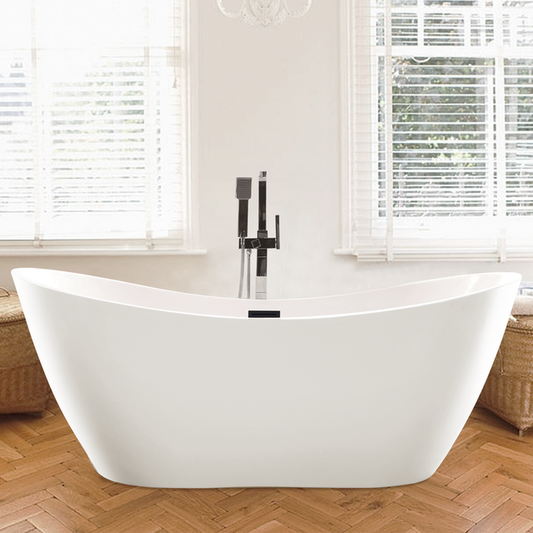 Create your own peaceful paradise in the bathroom with our stunning glossy white acrylic 69" freestanding soaking tub. This modern masterpiece effortlessly elevates any décor style and offers a luxurious retreat for ultimate relaxation.