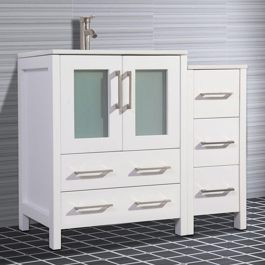 Vanity Art Brescia 36" Single White Freestanding Modern Bathroom Vanity Set With Integrated Ceramic Sink, 1 Shelf, 1 Side Cabinet and Mirror