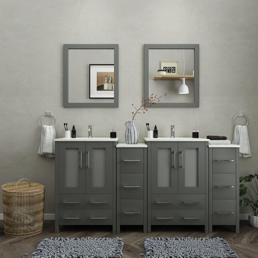 Vanity Art Brescia 72" Double Gray Freestanding Vanity Set With Integrated Ceramic Sink, 2 Side Cabinets and 2 Mirrors