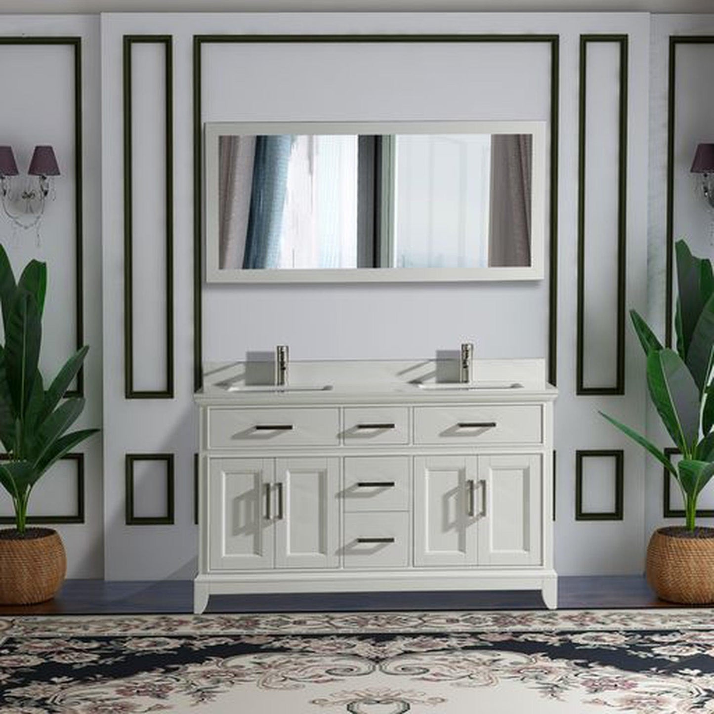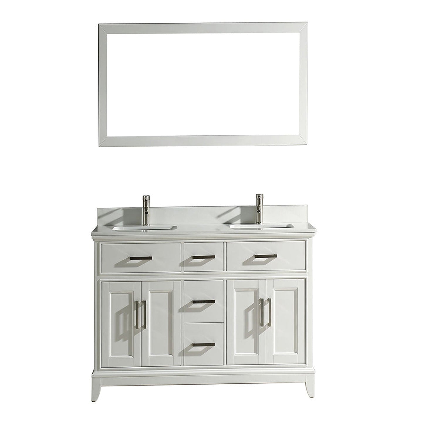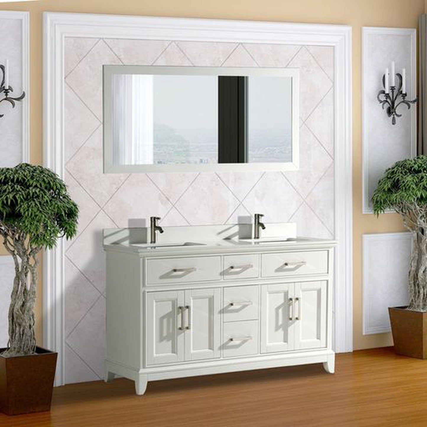 Vanity Art Genoa 60" Double White Freestanding Modern Bathroom Vanity Set With Super White Engineered Marble Top, White Ceramic Sink, Backsplash and Mirror