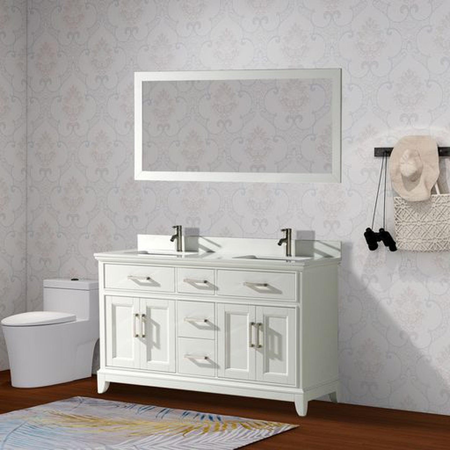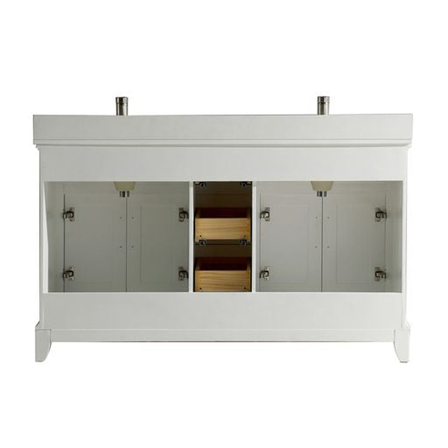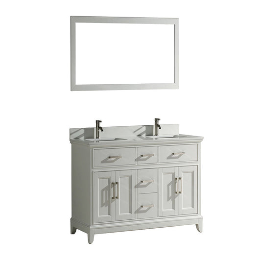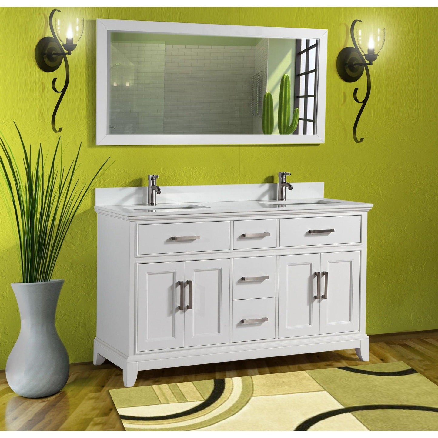 Vanity Art Genoa 60" Double White Freestanding Modern Bathroom Vanity Set With Super White Engineered Marble Top, White Ceramic Sink, Backsplash and Mirror