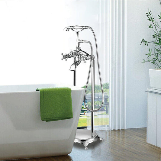 Vanity Art VA2019 40" Polished Chrome Freestanding Floor Mounted Bathtub Faucet With Handheld Shower