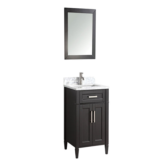 Vanity Art Savona 24" Single Espresso Freestanding Modern Bathroom Vanity Set With Carrara Marble Top, Undermount Ceramic Sink, 1 Dovetail Drawer Cabinet, Backsplash and Mirror