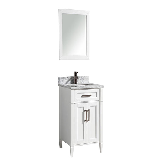 Vanity Art Savona 24" Single White Freestanding Modern Bathroom Vanity Set With Carrara Marble Top, Undermount Ceramic Sink, 1 Dovetail Drawer Cabinet, Backsplash and Mirror