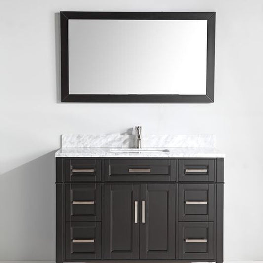 Vanity Art Savona 48" Single Espresso Freestanding Modern Bathroom Vanity Set With Carrara Marble Top, Undermount Ceramic Sink, 7 Dovetail Drawer Cabinet, Backsplash and Mirror