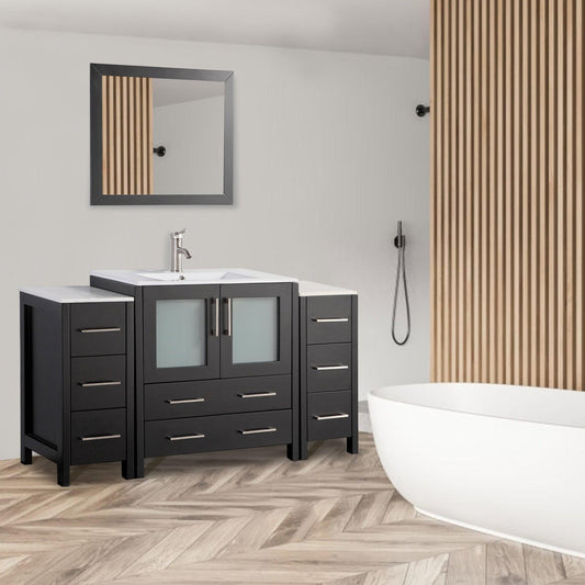 Vanity Art VA30 54" Single Espresso Freestanding Modern Bathroom Vanity Set With Integrated Ceramic Sink Compact 1 Shelf, 8 Dovetail Drawers Cabinet And Mirror