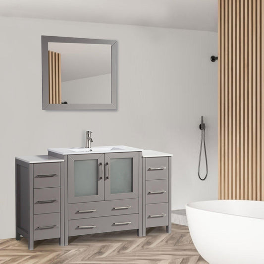 Vanity Art VA30 54" Single Gray Freestanding Modern Bathroom Vanity Set With Integrated Ceramic Sink Compact 1 Shelf, 8 Dovetail Drawers Cabinet And Mirror