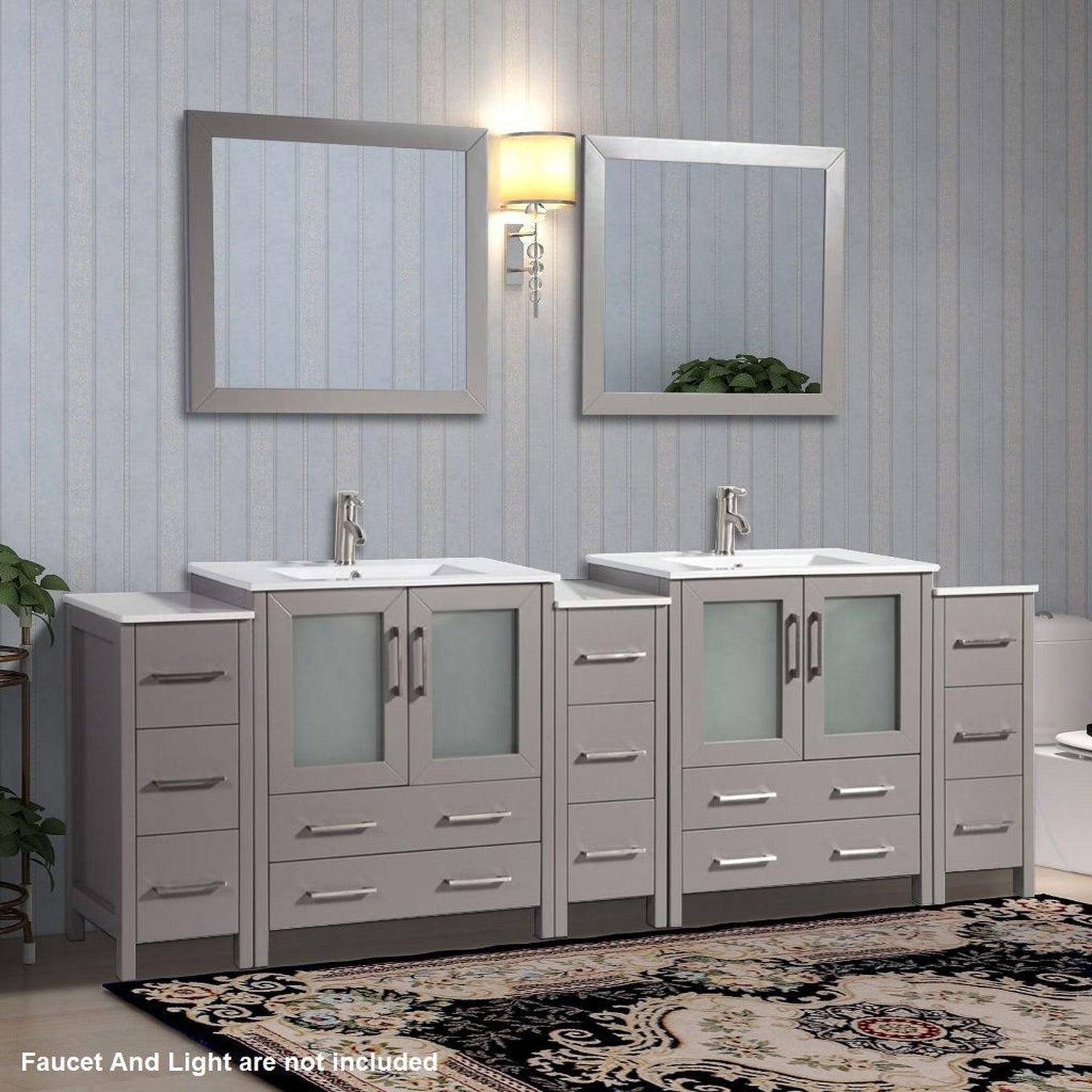 Vanity Art VA30 96" Double Gray Freestanding Modern Bathroom Vanity Set With Integrated Ceramic Sink, Compact 2 Shelves, 13 Dovetail Drawers Cabinet And 2 Mirrors