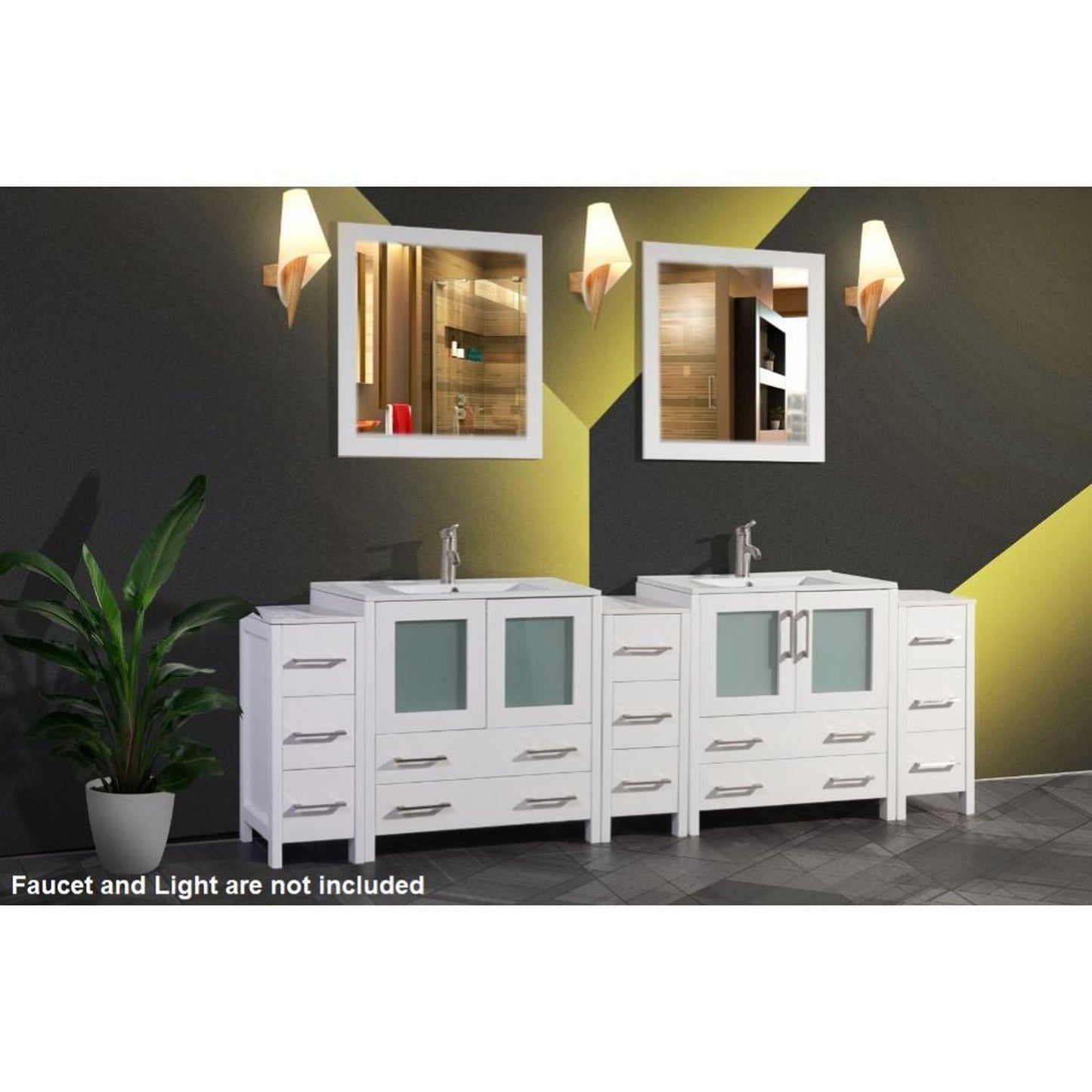 Vanity Art VA30 96" Double White Freestanding Modern Bathroom Vanity Set With Integrated Ceramic Sink, Compact 2 Shelves, 13 Dovetail Drawers Cabinet And 2 Mirrors