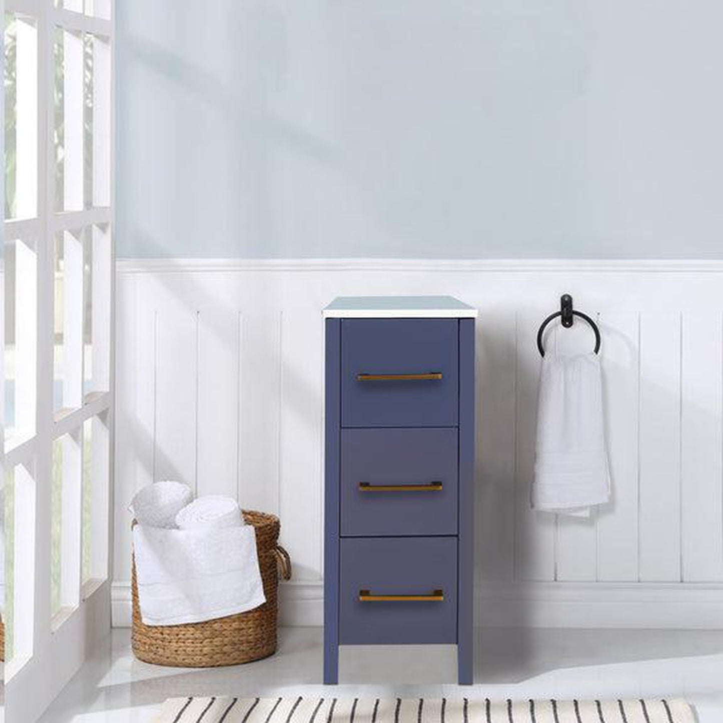 Vanity Art VA3012 12" Blue Freestanding Oak Vanity Cabinet With Stone Top and Soft Closing Drawers