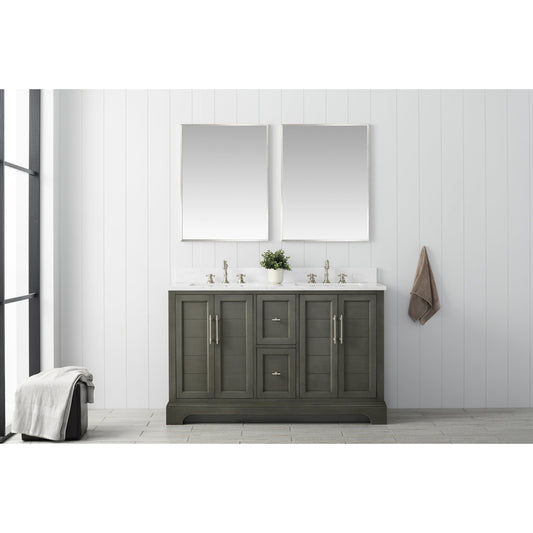 Vanity Art Vannes 54" Double Silver Gray Freestanding Vanity Set With Engineered Marble Countertop and Integrated Sink