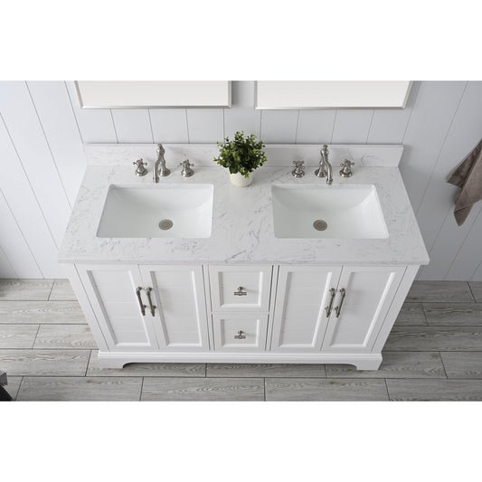 Vanity Art Vannes 54" Double White Freestanding Vanity Set With Engineered Marble Countertop and Integrated Sink