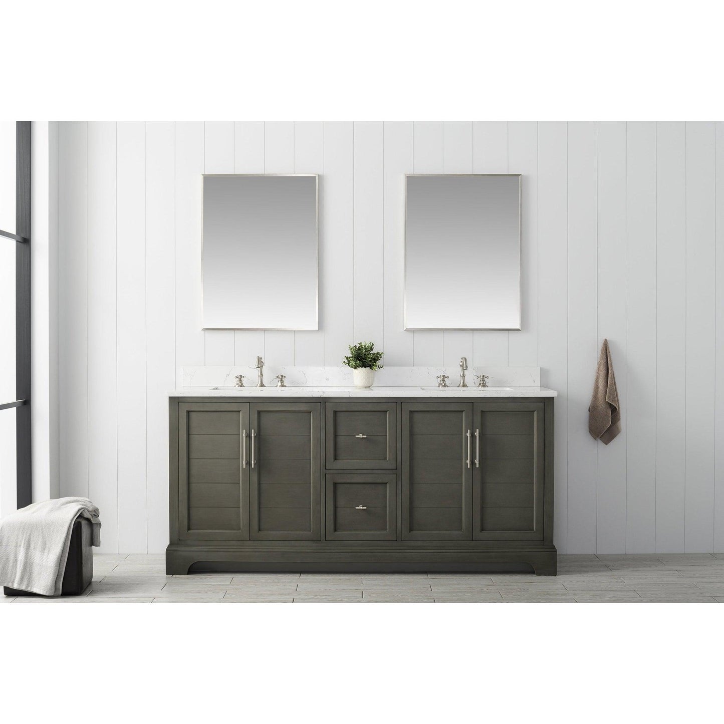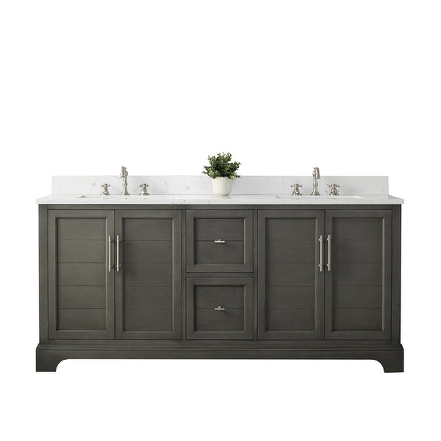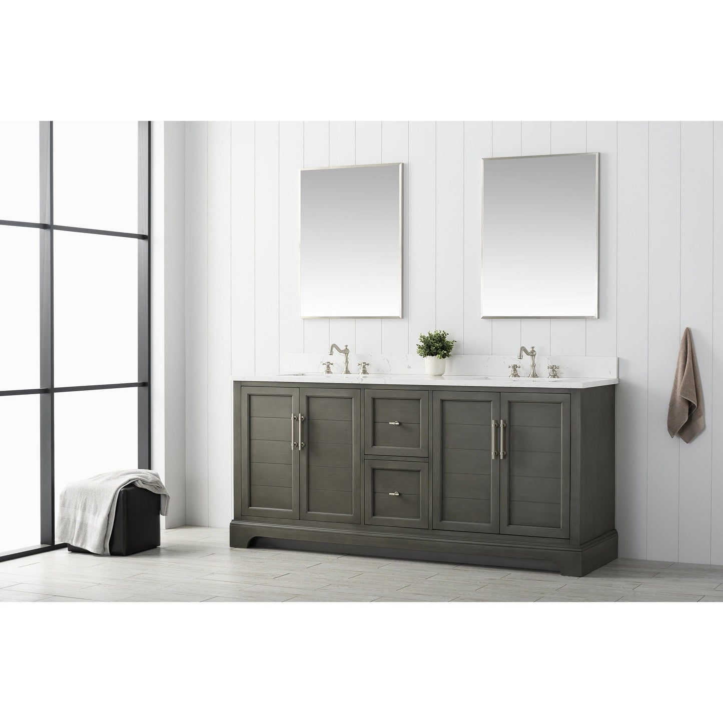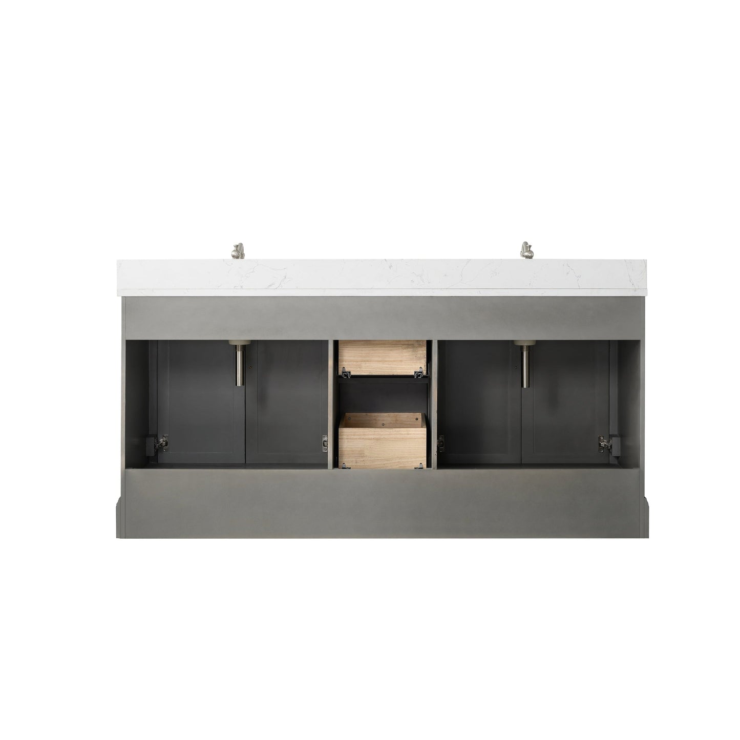 Vanity Art Vannes 72" Double Silver Gray Freestanding Vanity Set With Engineered Marble Countertop and Integrated Sink