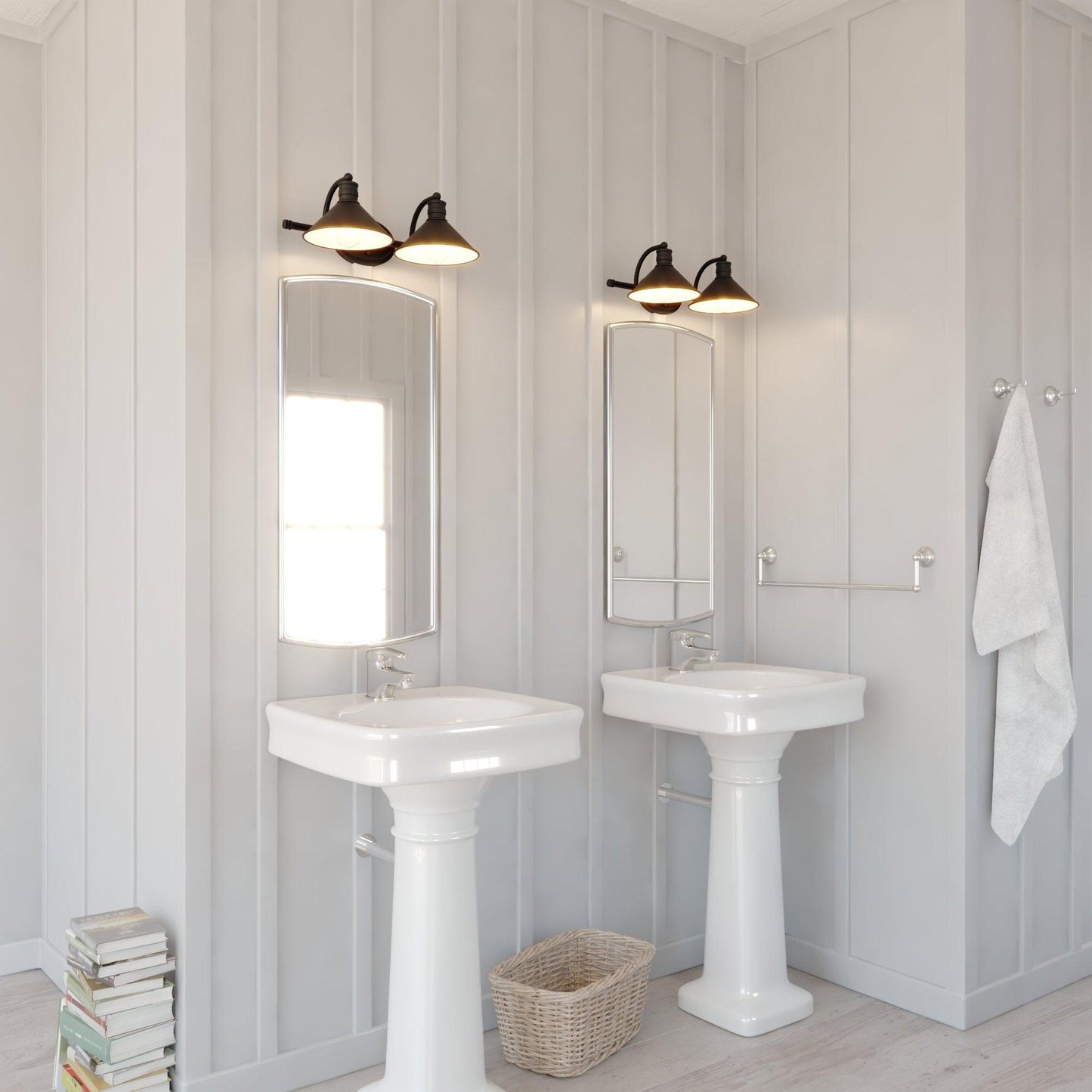 - Vaxcel Akron 18" 2-Light Oil Rubbed Bronze and Matte White Vanity Light