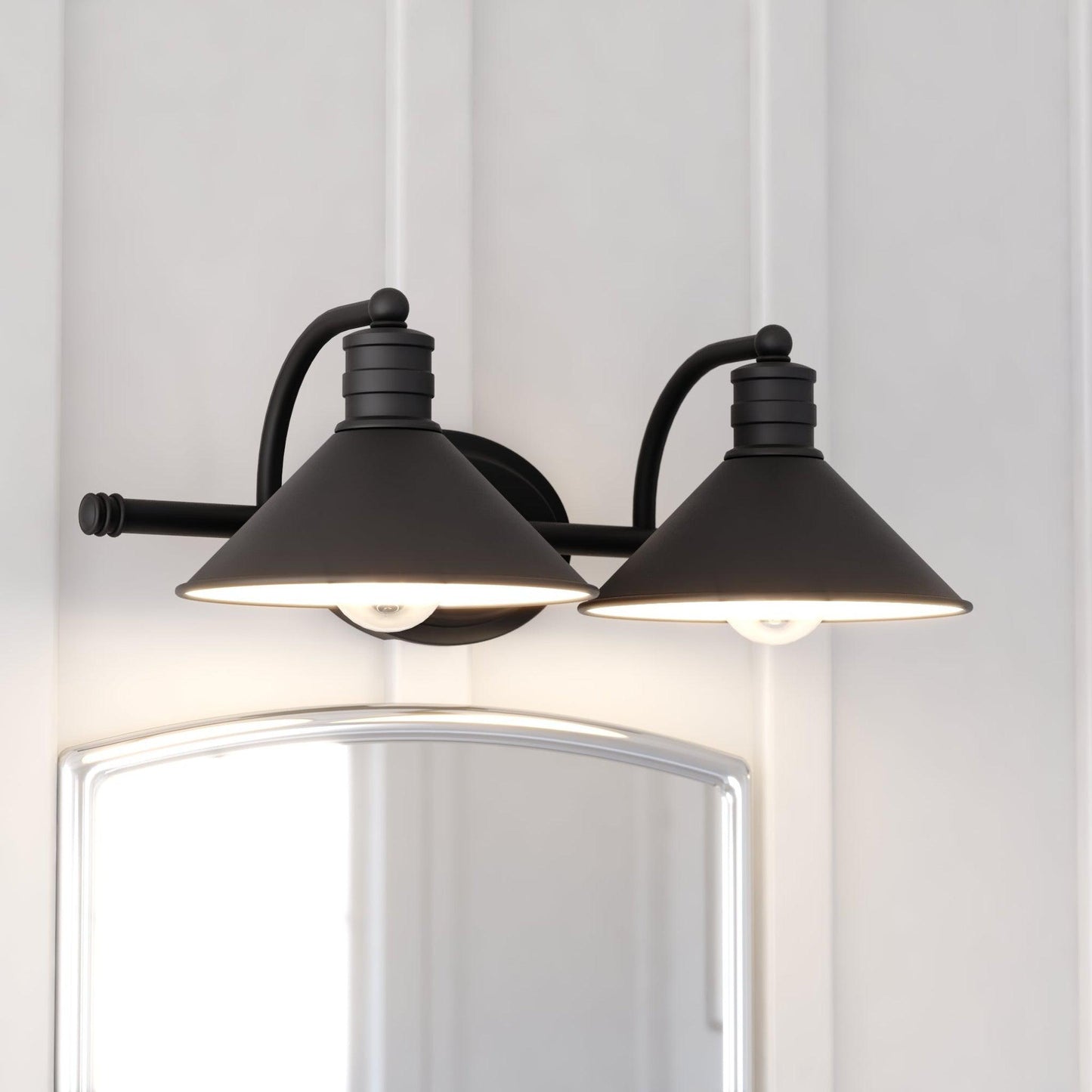 Vaxcel Akron 18" 2-Light Oil Rubbed Bronze and Matte White Vanity Light with Metal Shade