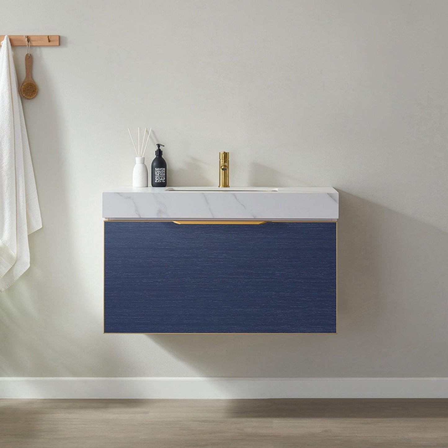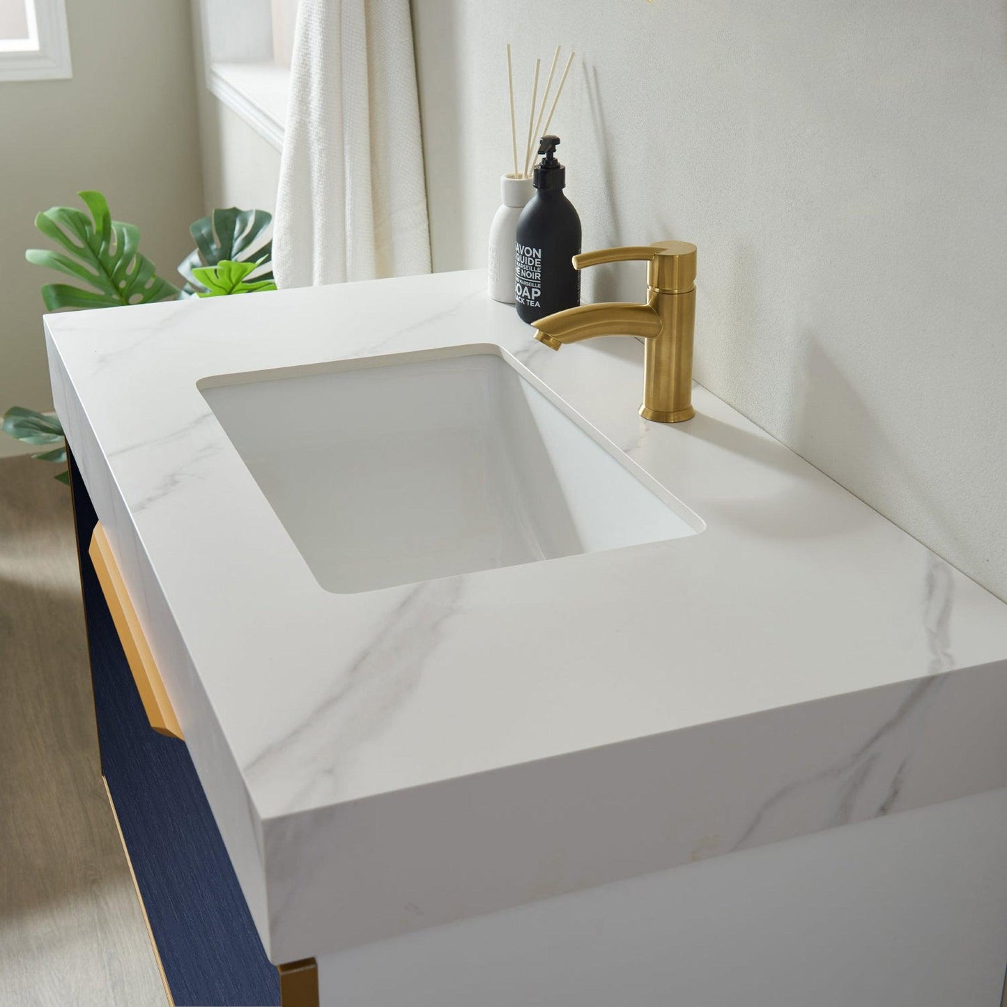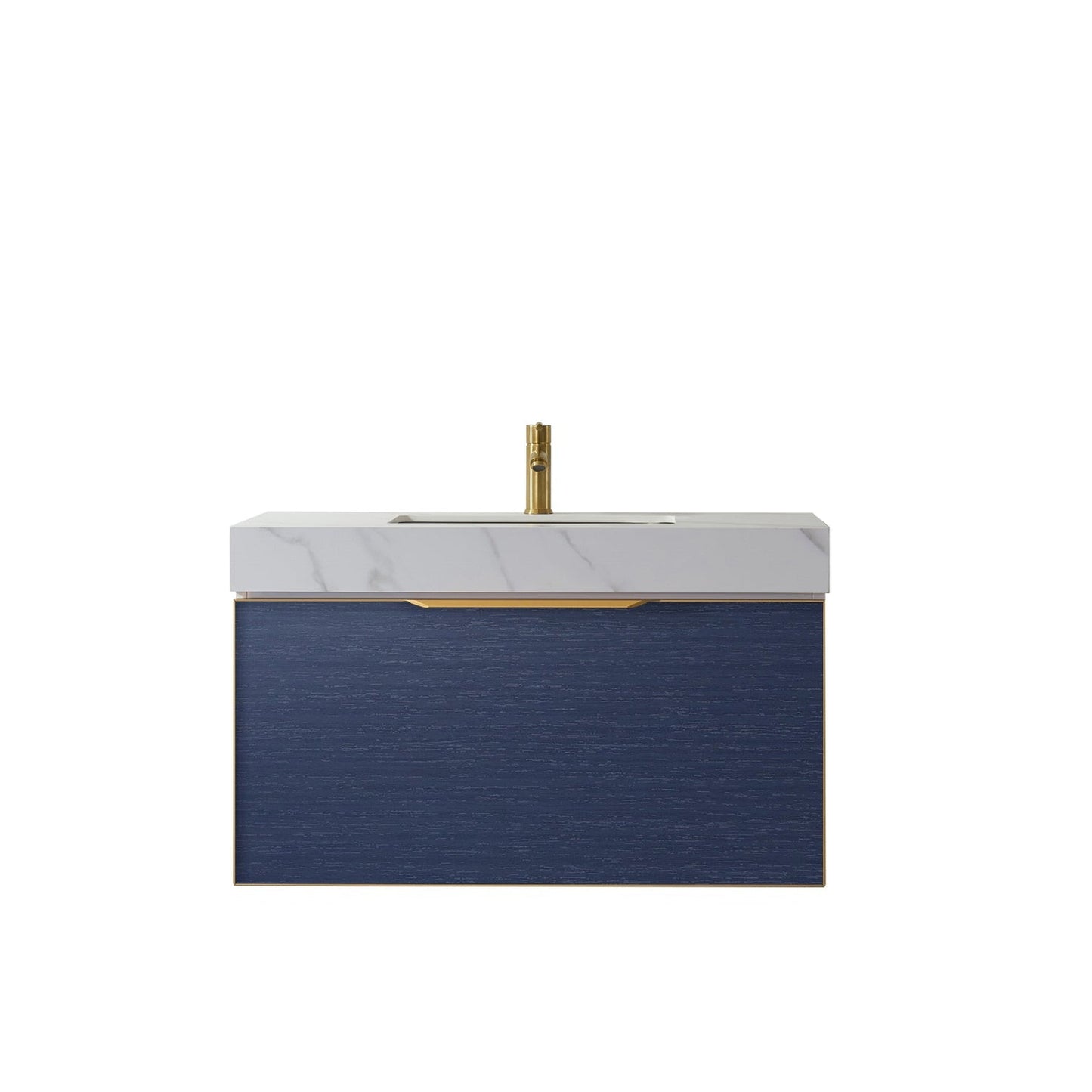 Vinnova Alicante 36" Single Vanity In Classic Blue With White Sintered Stone Countertop And Undermount Sink Without Mirror
