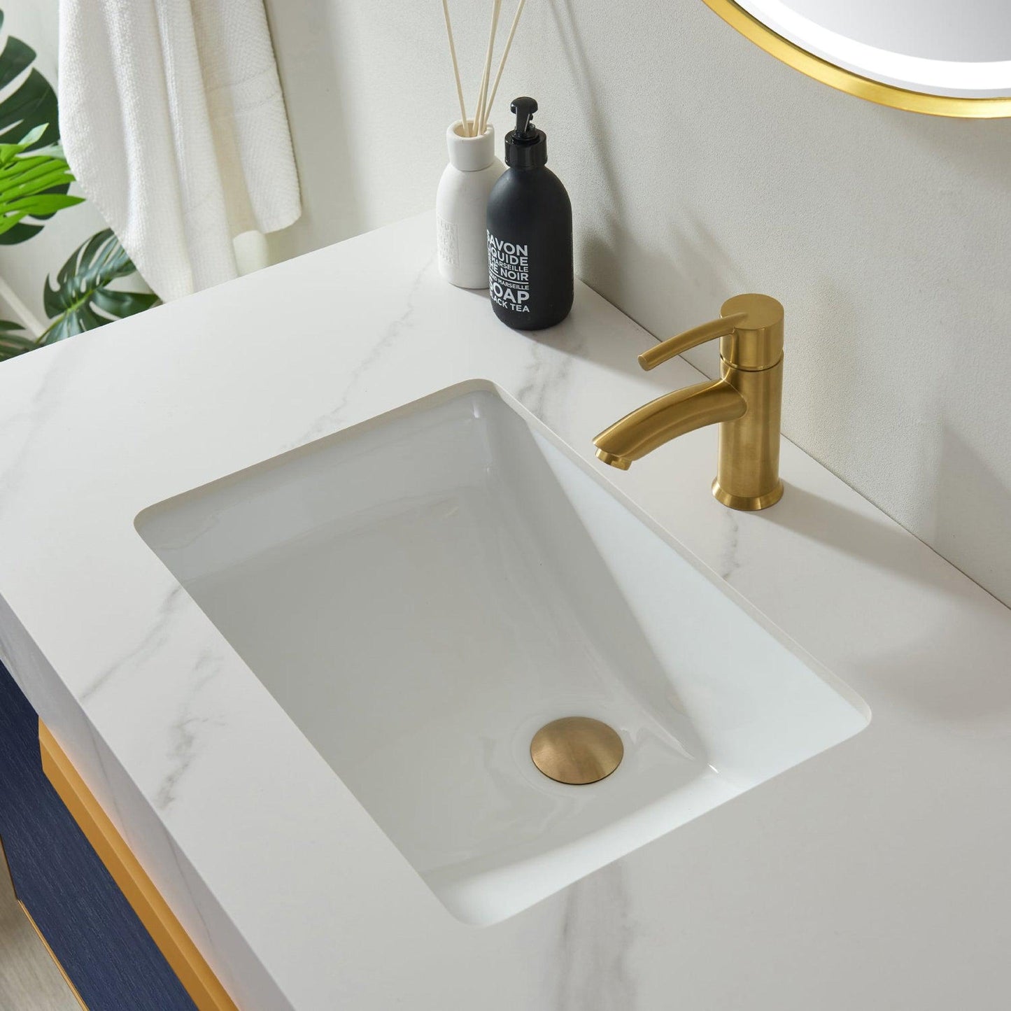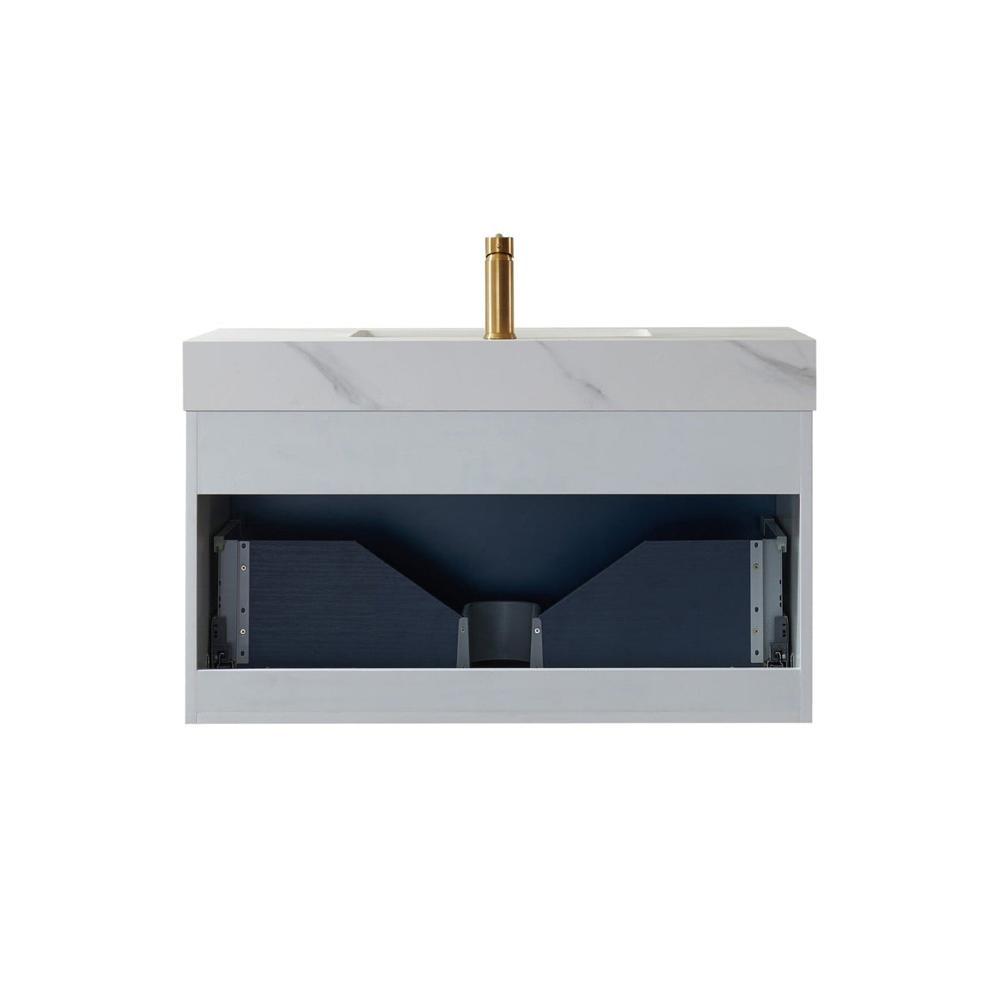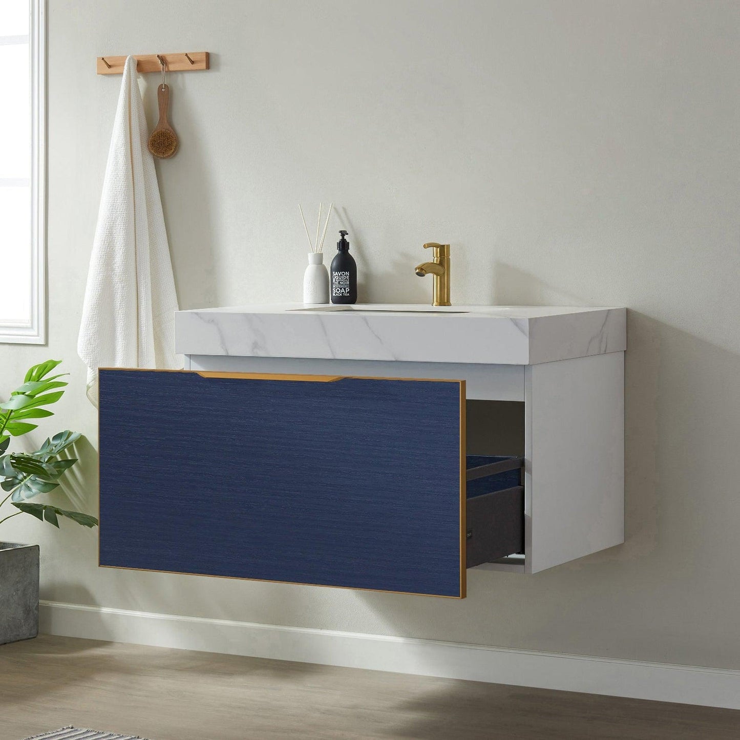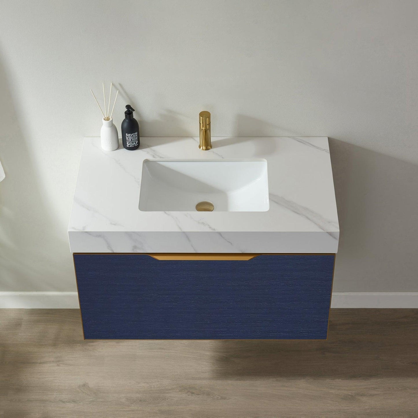 Vinnova Alicante 36" Single Vanity In Classic Blue With White Sintered Stone Countertop And Undermount Sink Without Mirror