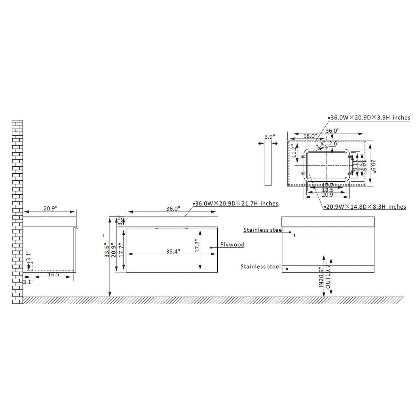 | Cabinet Only Dimensions | H 18.3" x W 35.6" x D 20.5" |