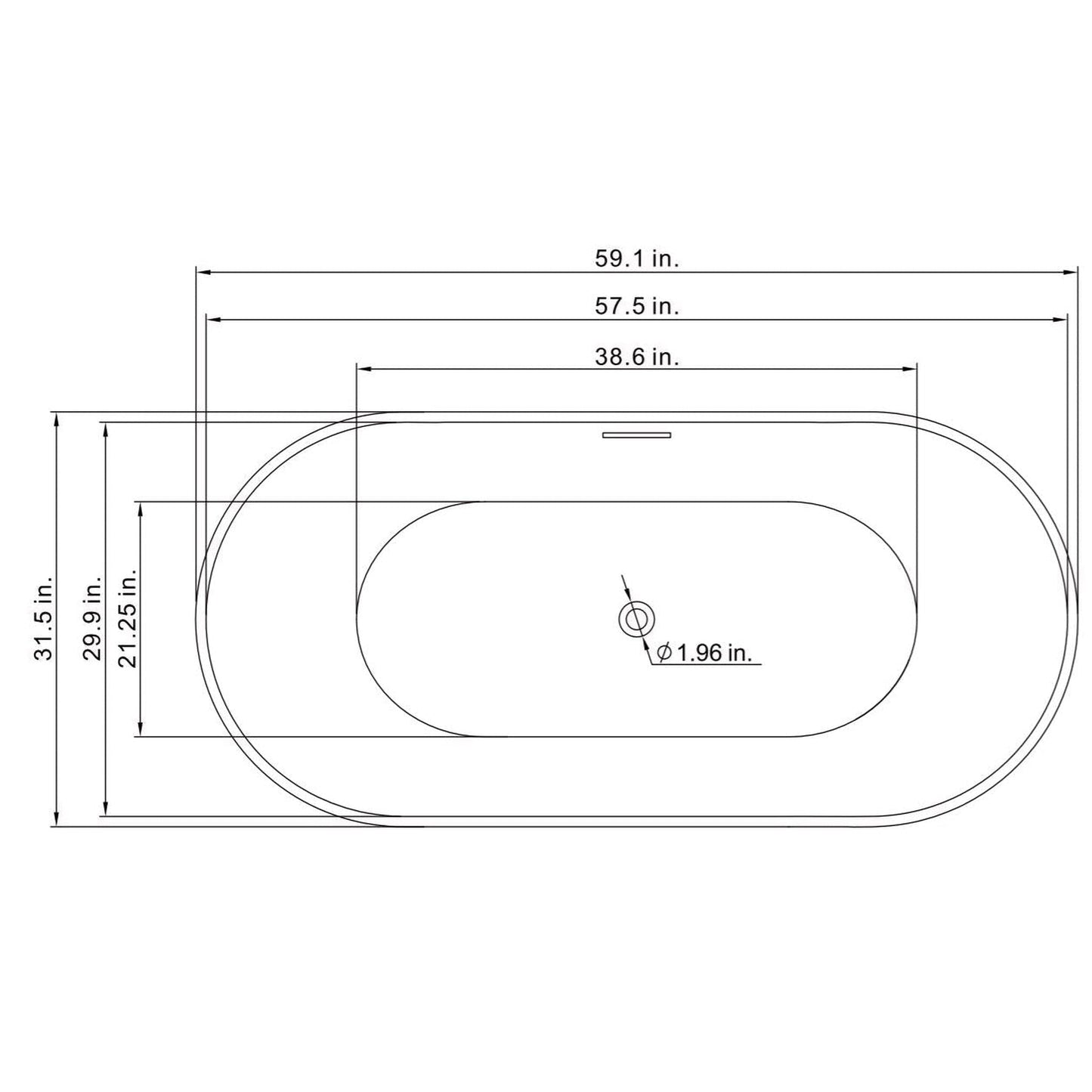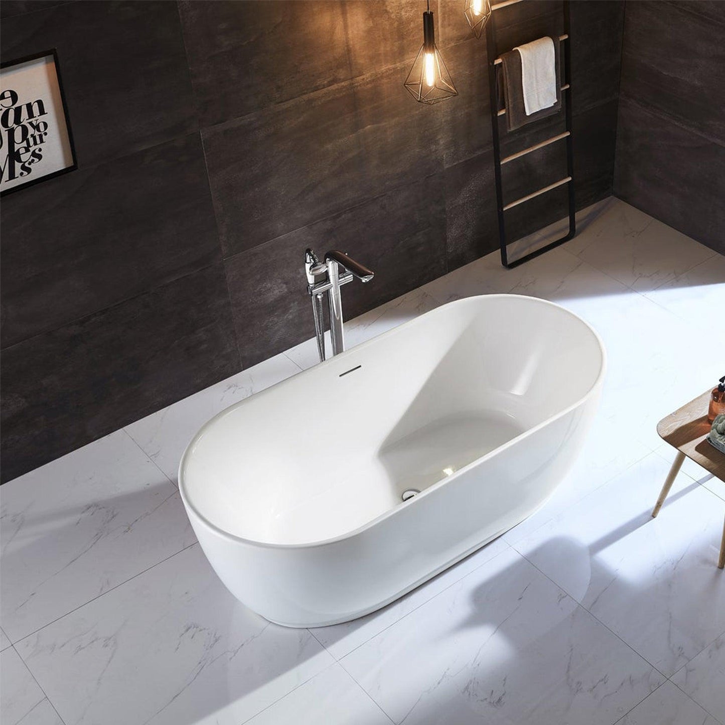 Vinnova Angelica 59" x 32" White Oval Freestanding Soaking Acrylic Bathtub