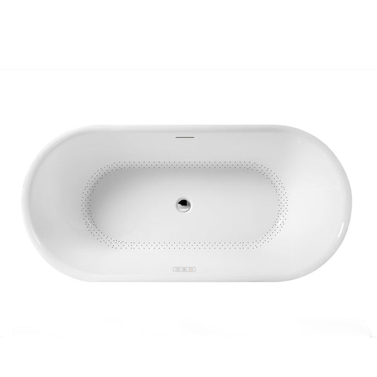 Vinnova Aubrey 67" x 32" White Oval Freestanding Soaking Acrylic Bathtub With Air Jet & Lighting