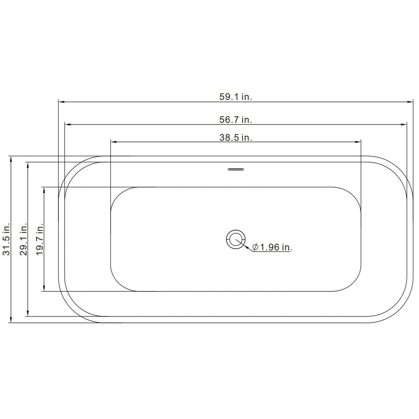 Vinnova Augustine 59" x 32" White Rectangular Freestanding Soaking Acrylic Bathtub
