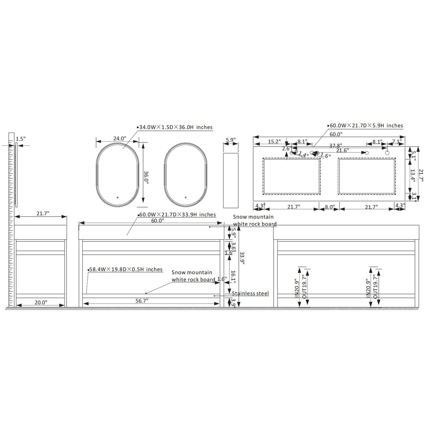 | Cabinet Only Dimensions | H 28" x W 59.8" x D 21.5" |