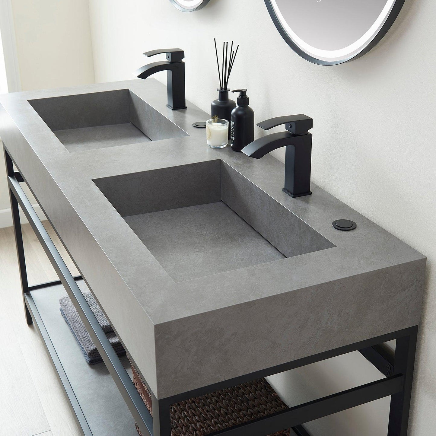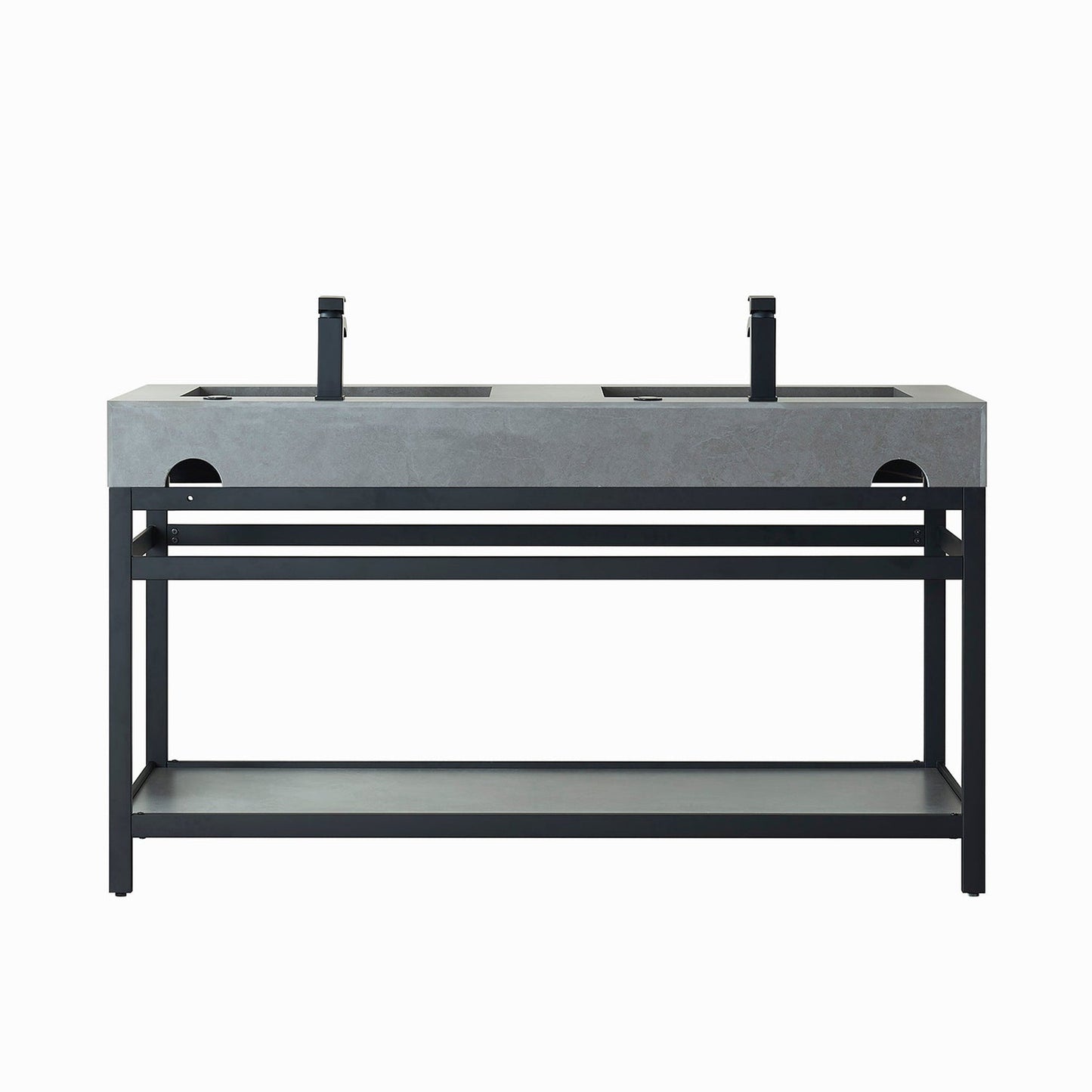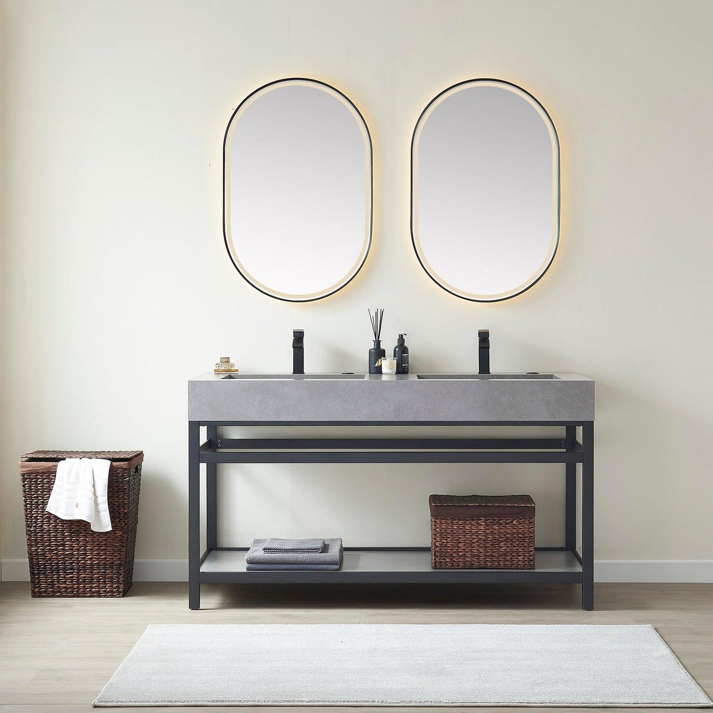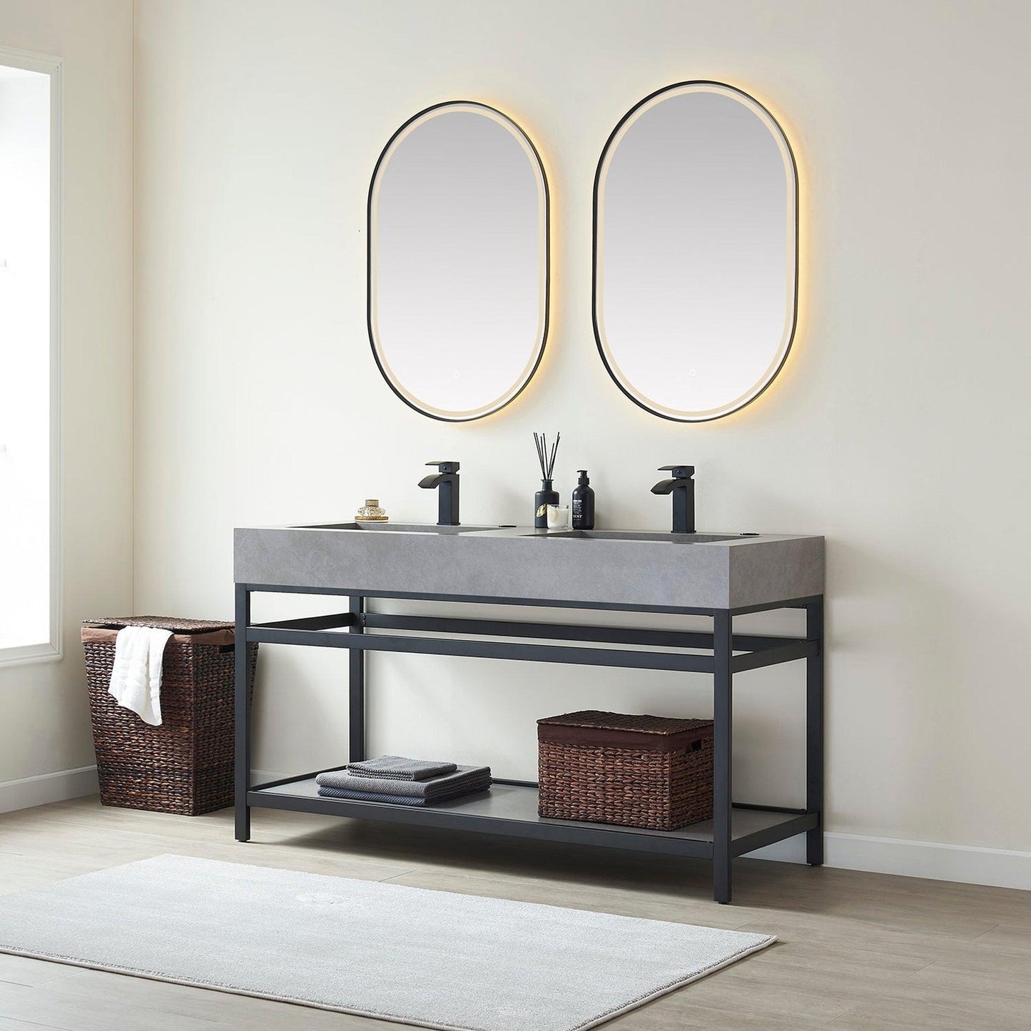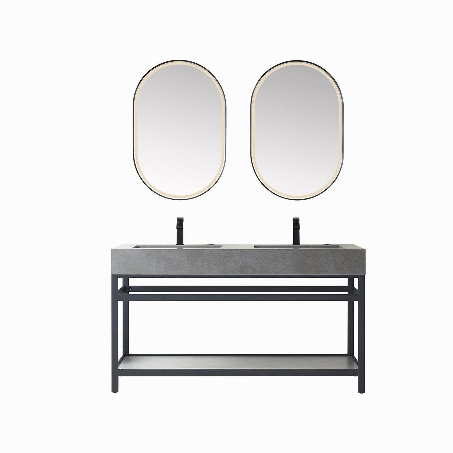 Vinnova Bilbao 60" Double Vanity With Matte Black Stainless Steel Bracket Match With Grey Sintered Stone Countertop With Mirror