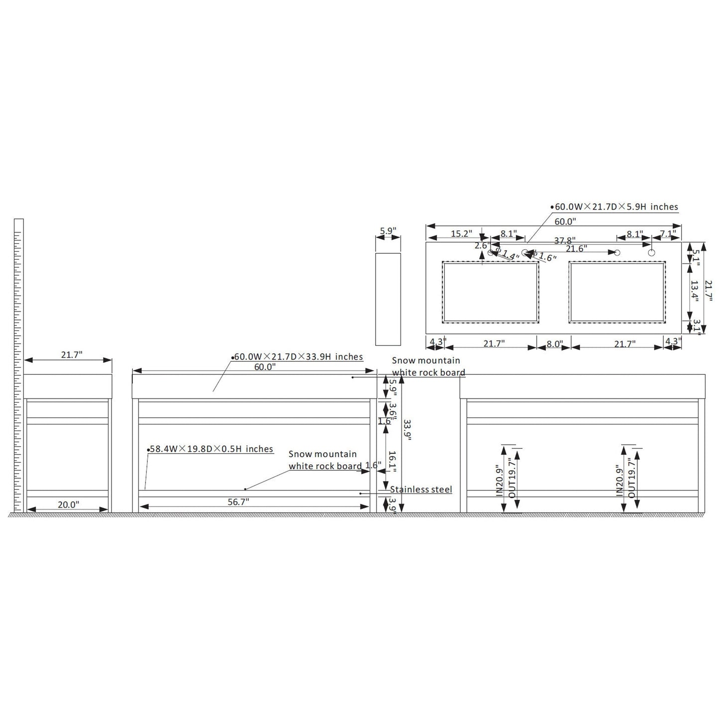| Cabinet Only Dimensions | H 28" x W 59.8" x D 21.5" |