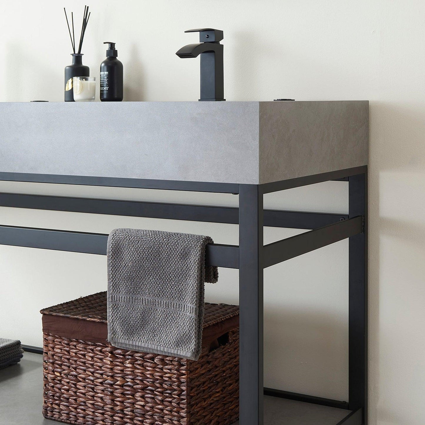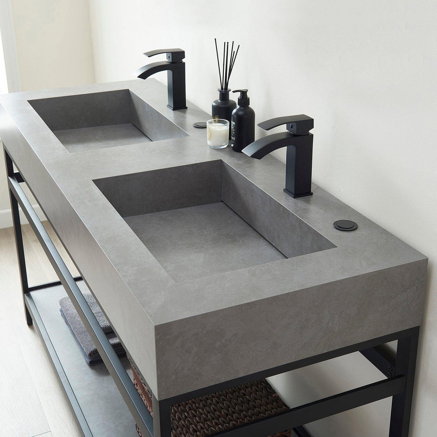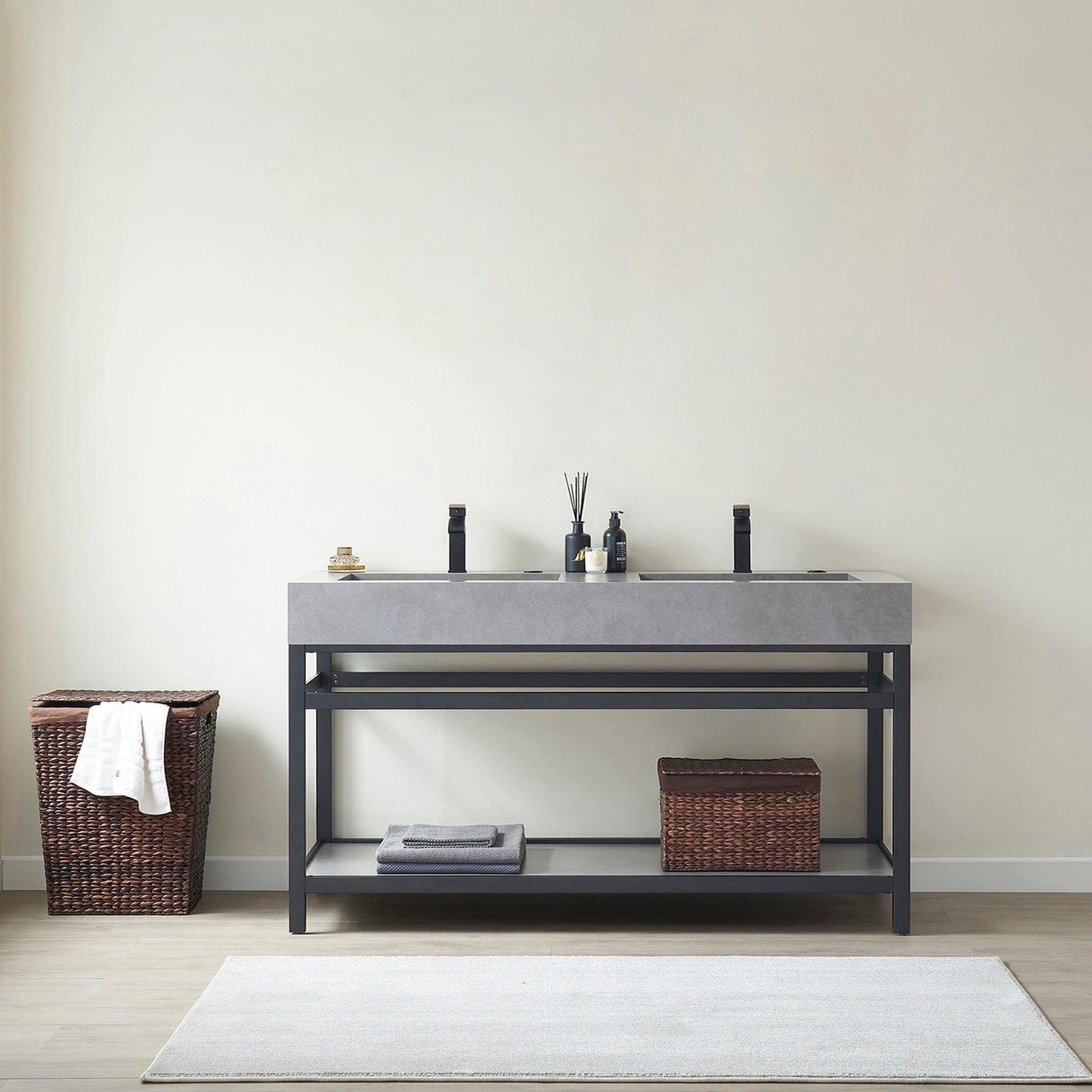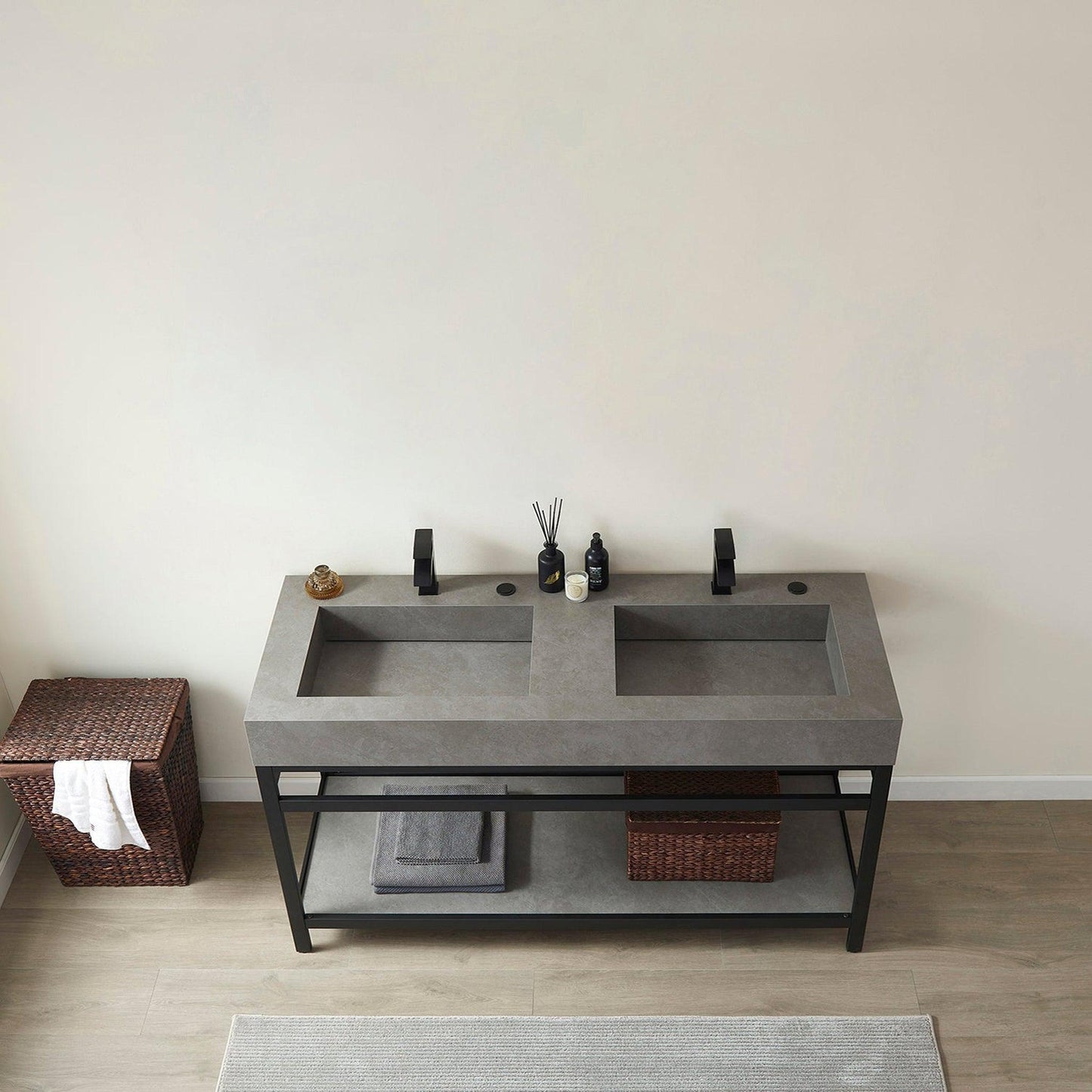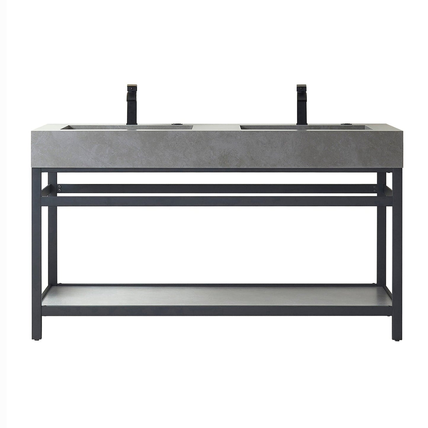 Vinnova Bilbao 60" Double Vanity With Matte Black Stainless Steel Bracket Match With Grey Sintered Stone Countertop Without Mirror