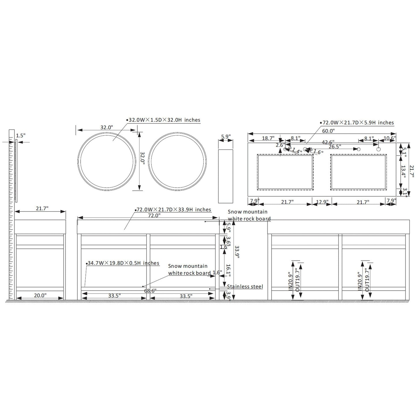 | Mirror Dimensions | H 32" x W 32" x D 1.5" |
