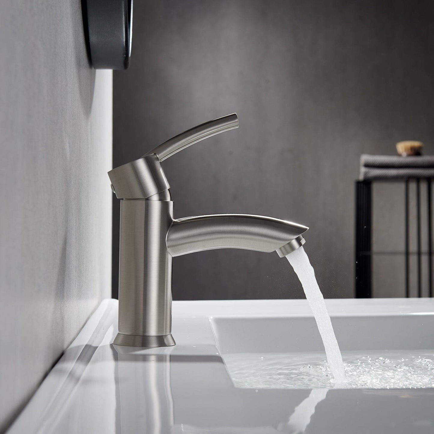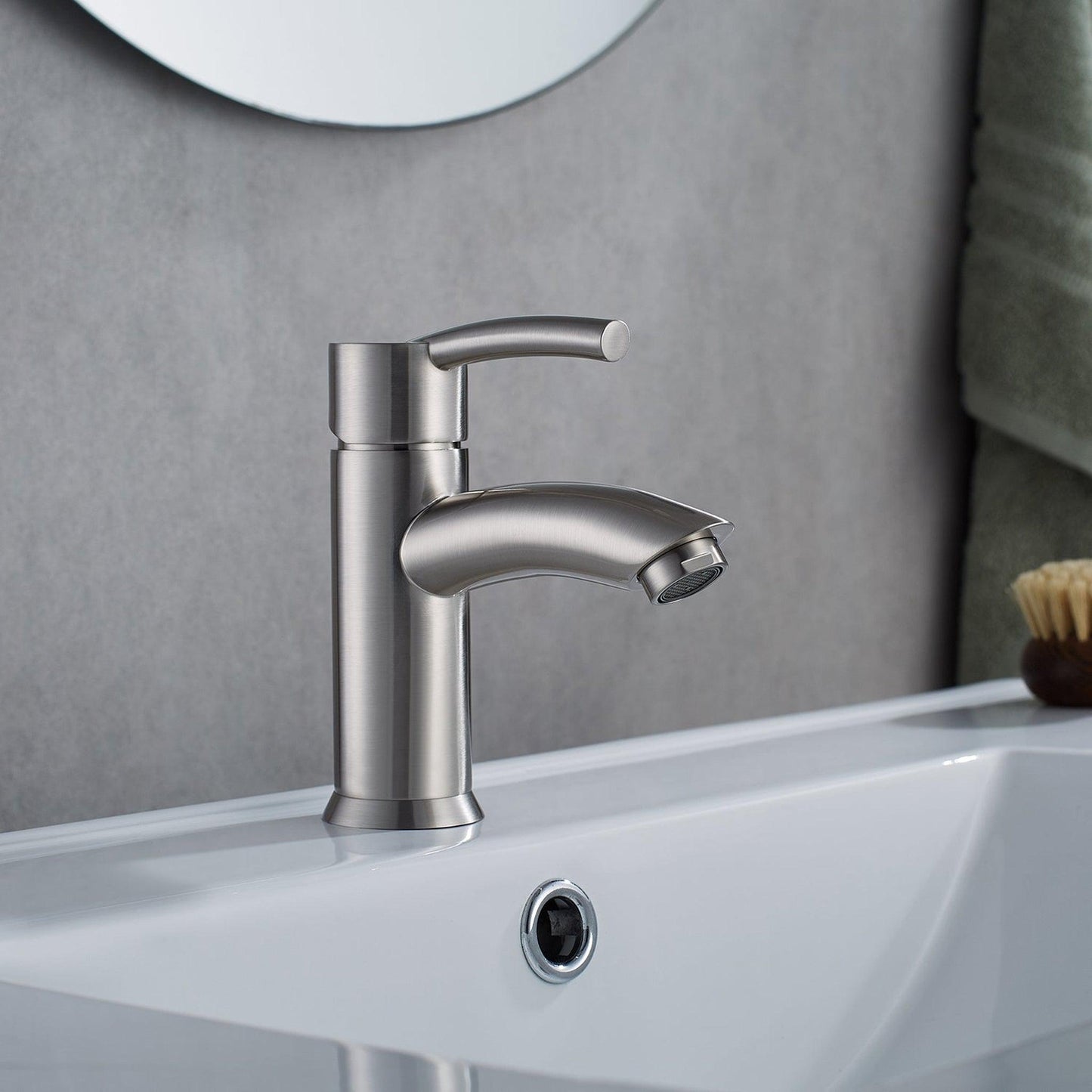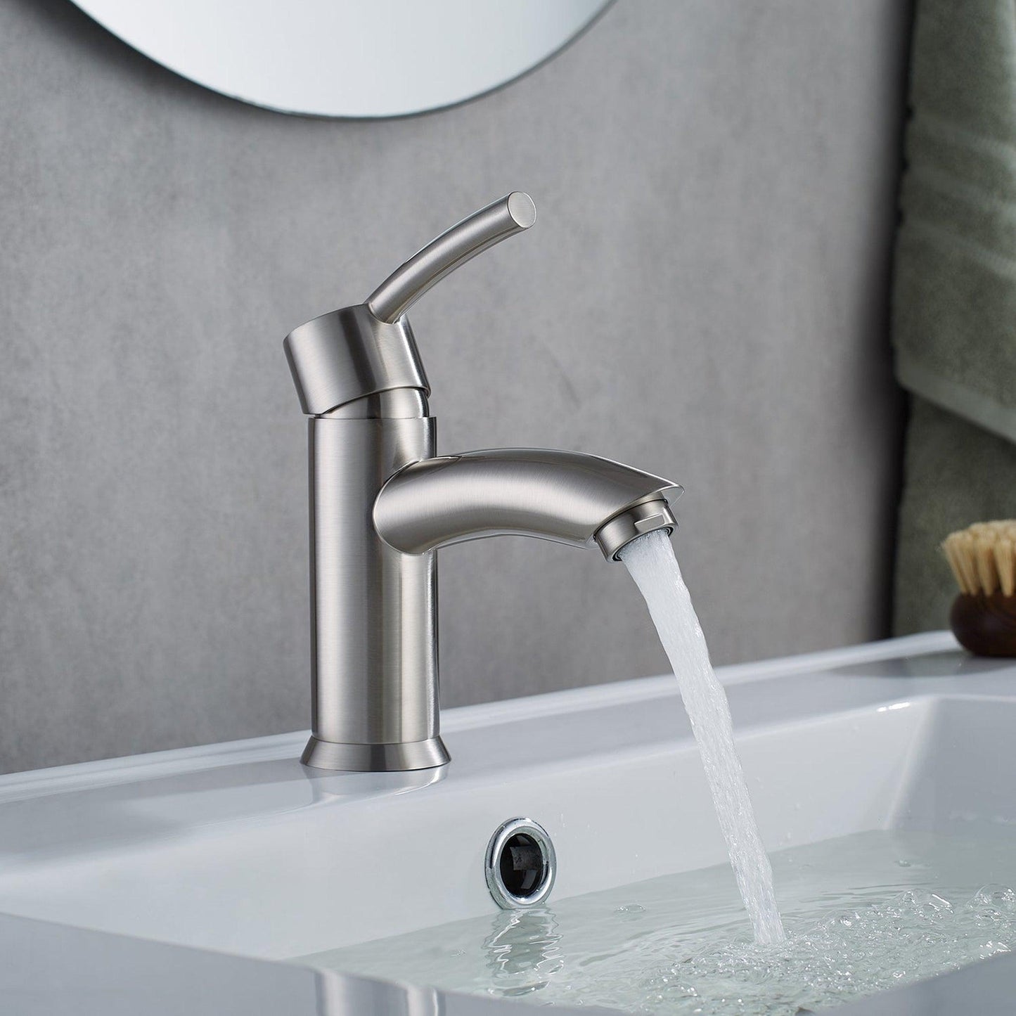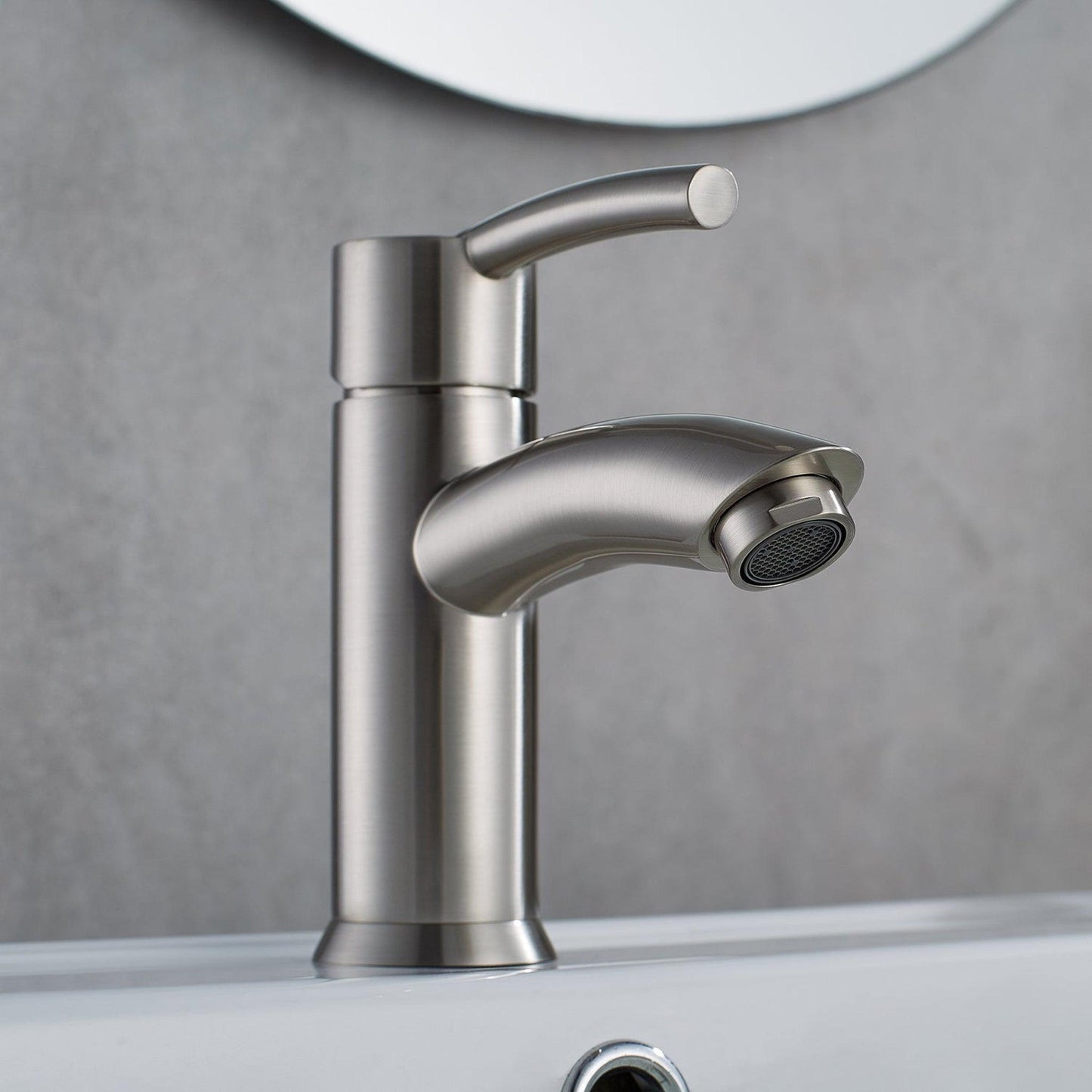 Vinnova Bliss 6" Single Hole Satin Nickel Low Arc Bathroom Sink Faucet