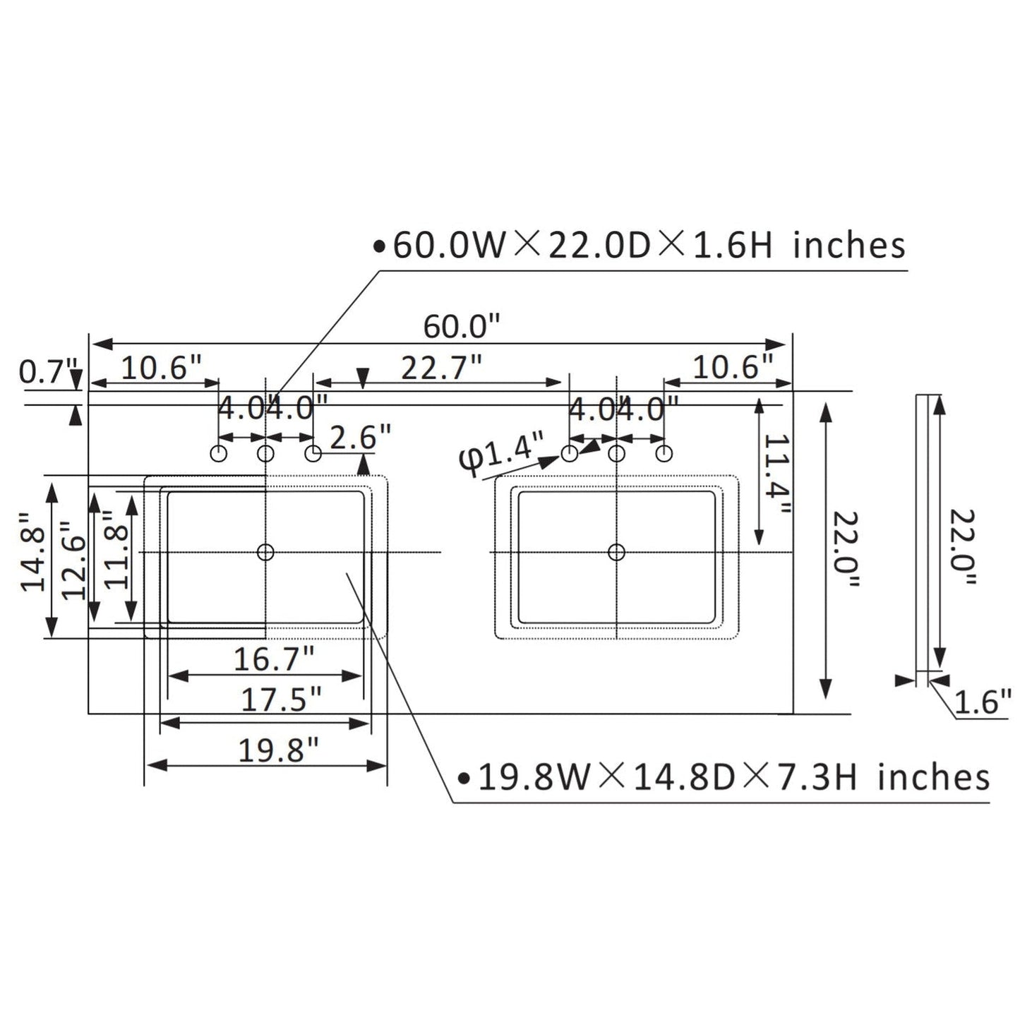 | Vanity Assembled Dimension | 60" W x 22" D x 34.6" H |