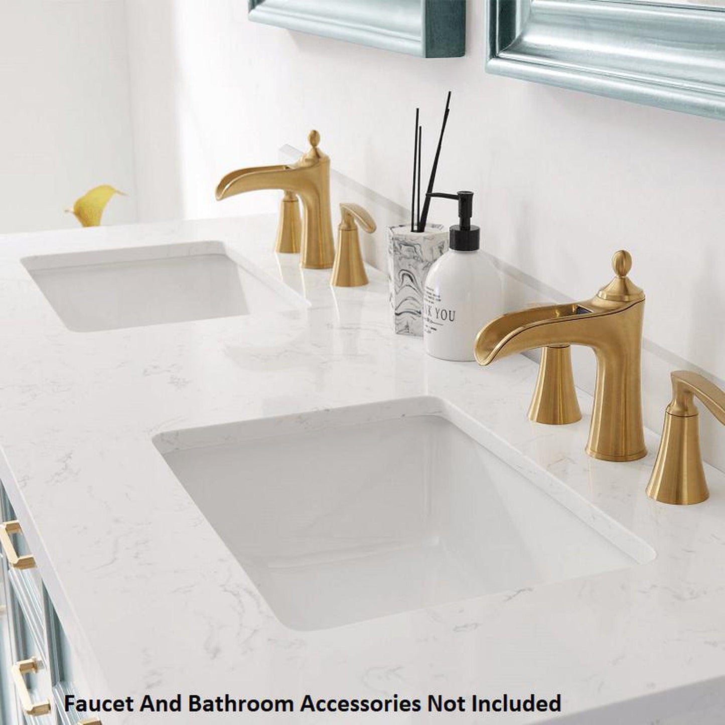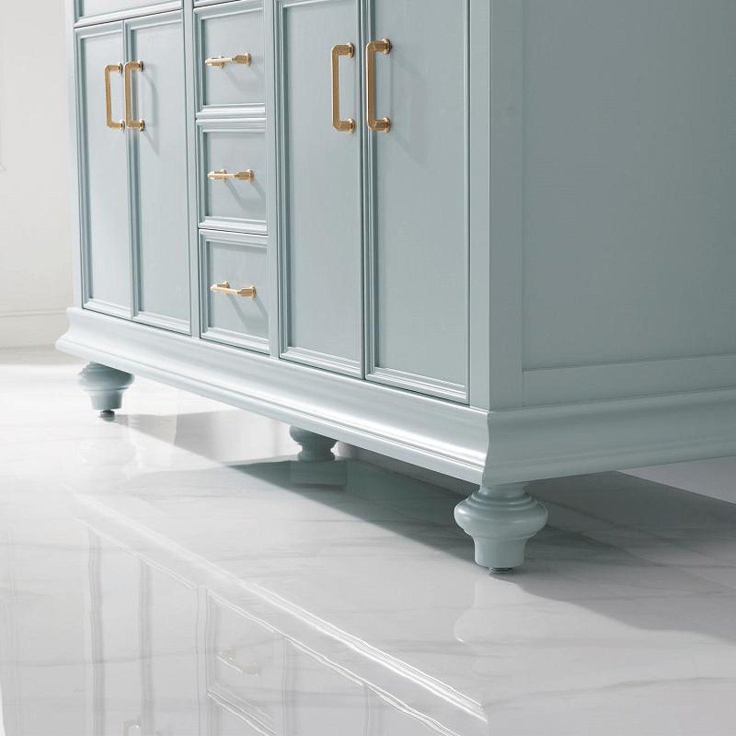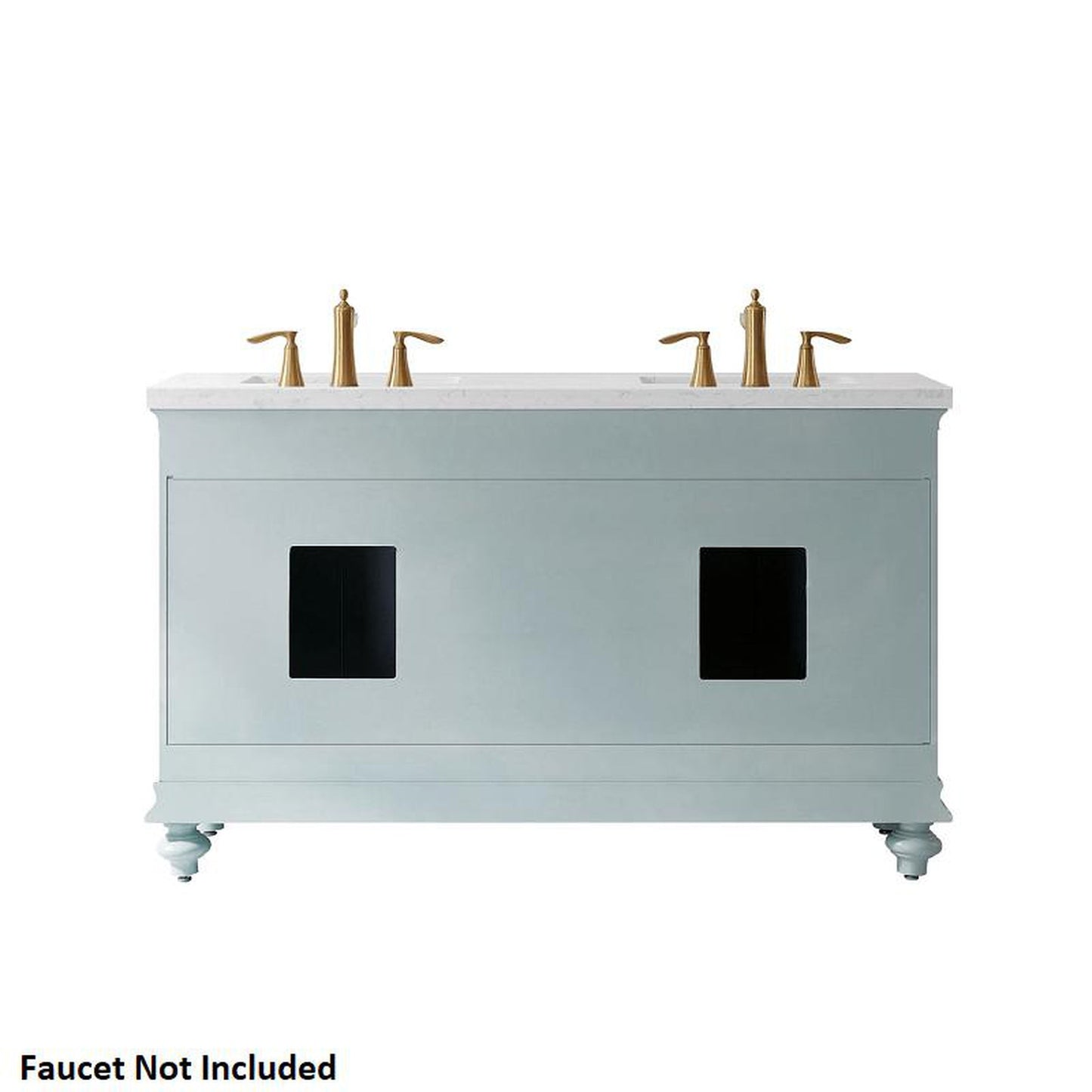 Vinnova Charlotte 60" Finnish Green Freestanding Double Vanity Set In White Carrara Composite Quartz Stone Top With Undermount Ceramic Sink and Backsplash
