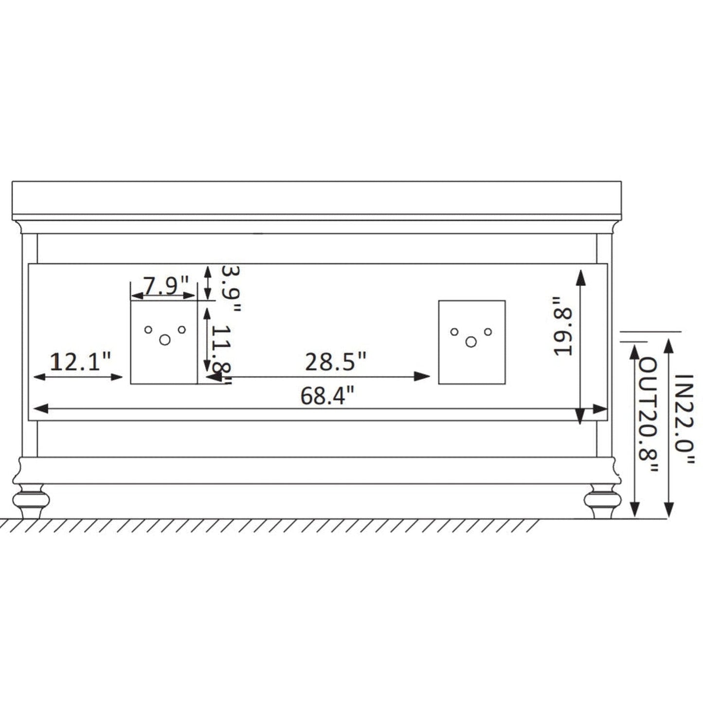| Cabinet Only Dimension | 72" W x 22" D x 33.1" H |