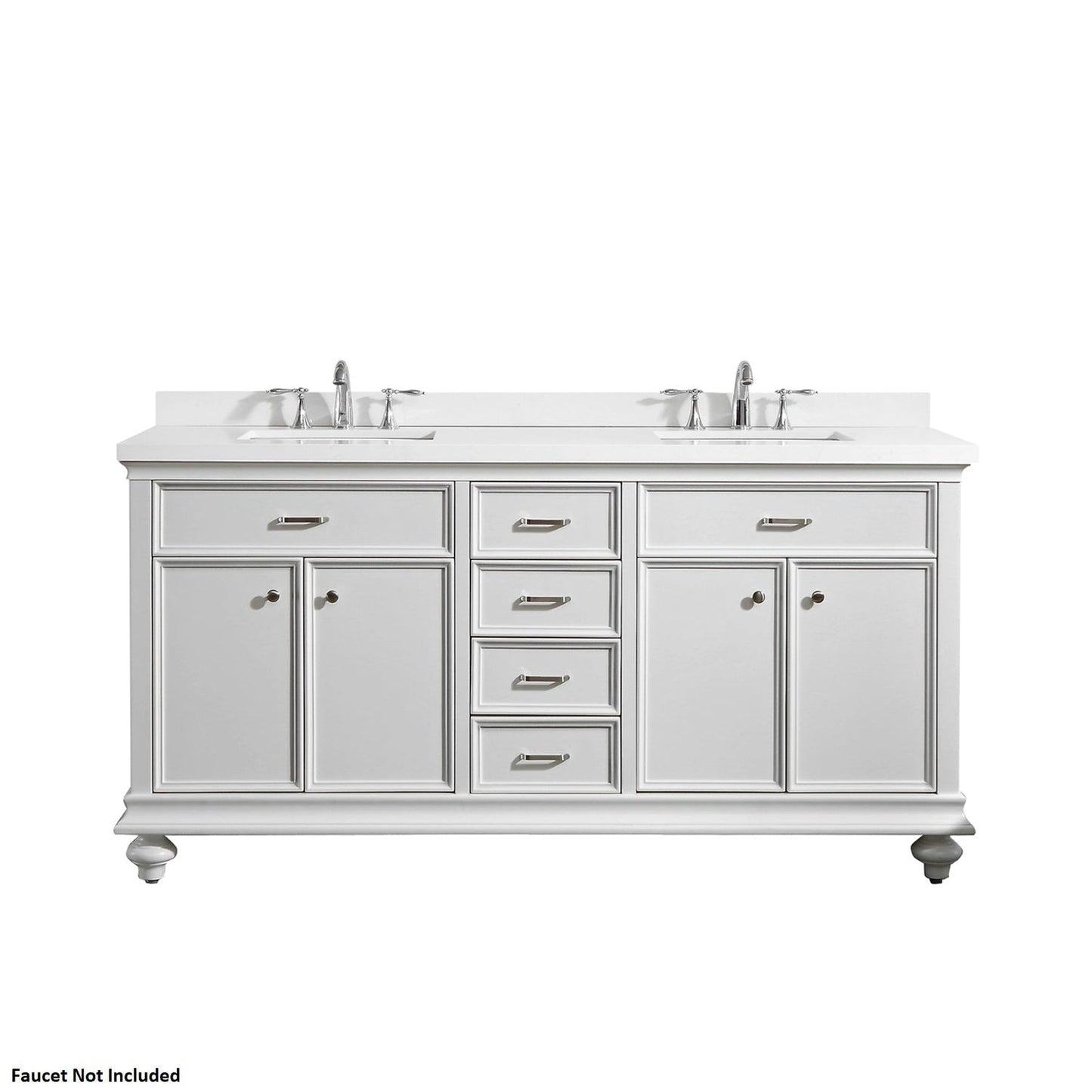 Vinnova Charlotte 72" White Freestanding Double Vanity Set In White Carrara Composite Quartz Stone Top With Undermount Ceramic Sink and Backsplash