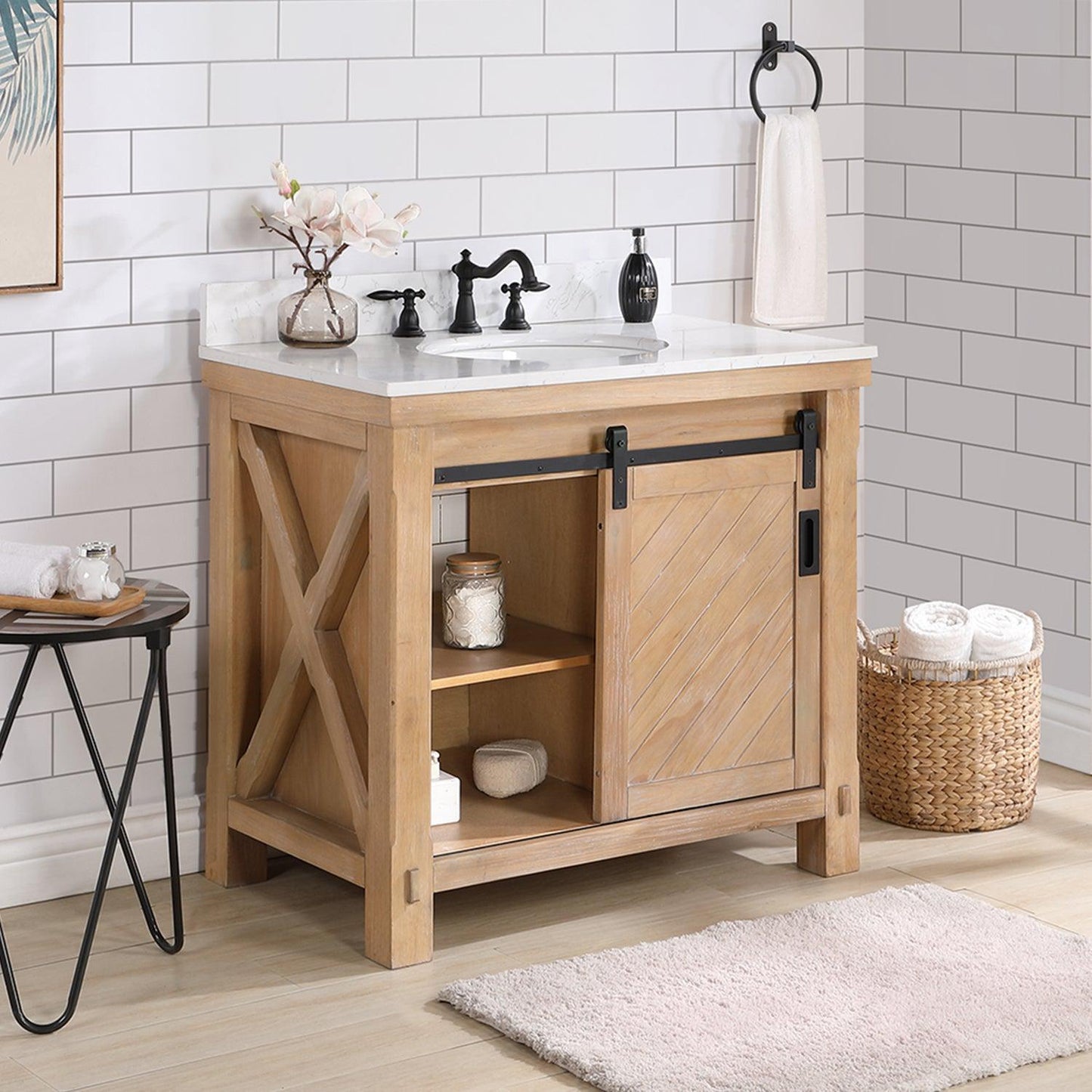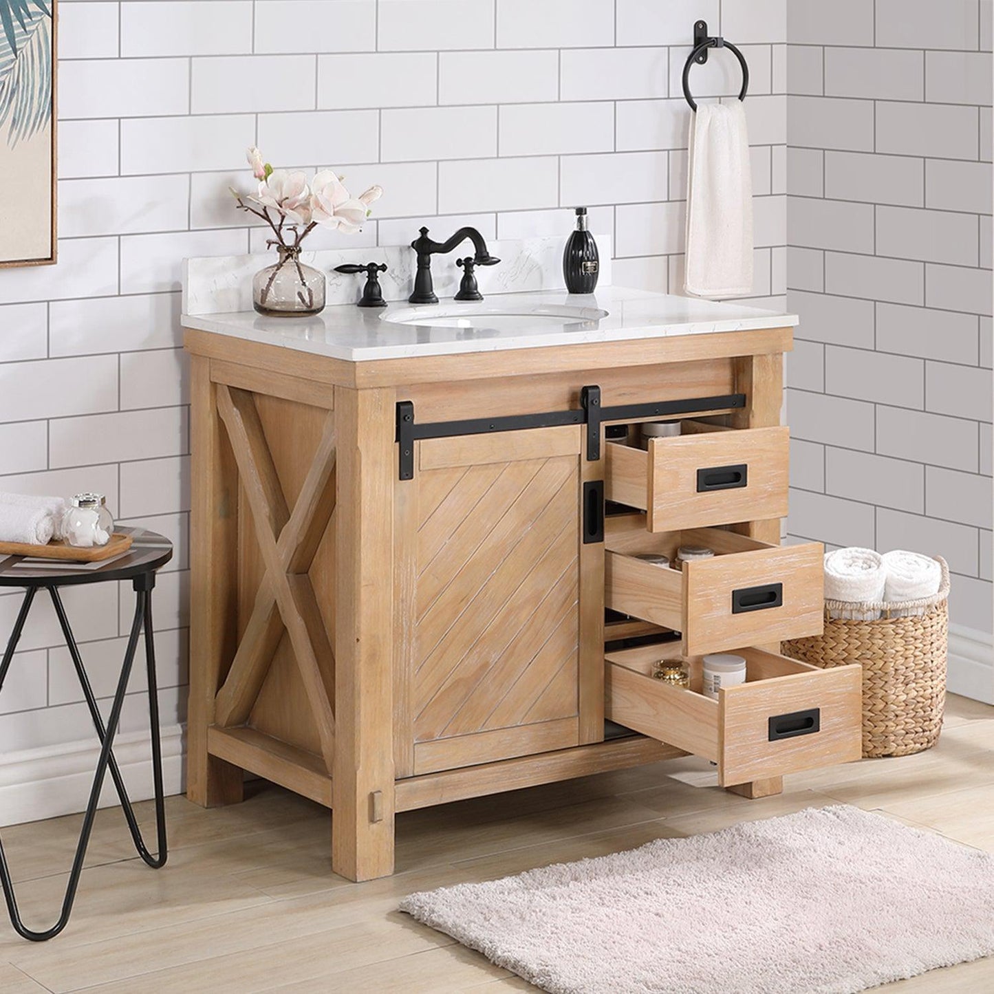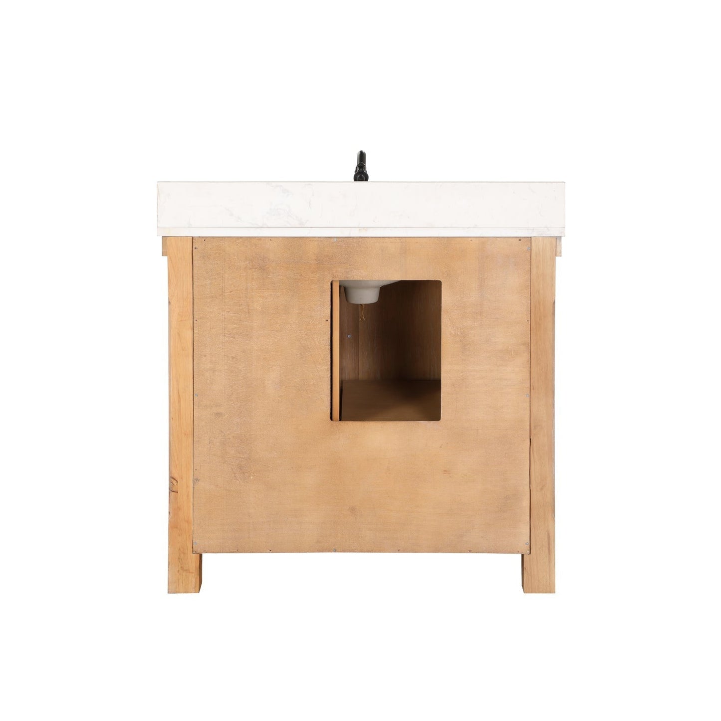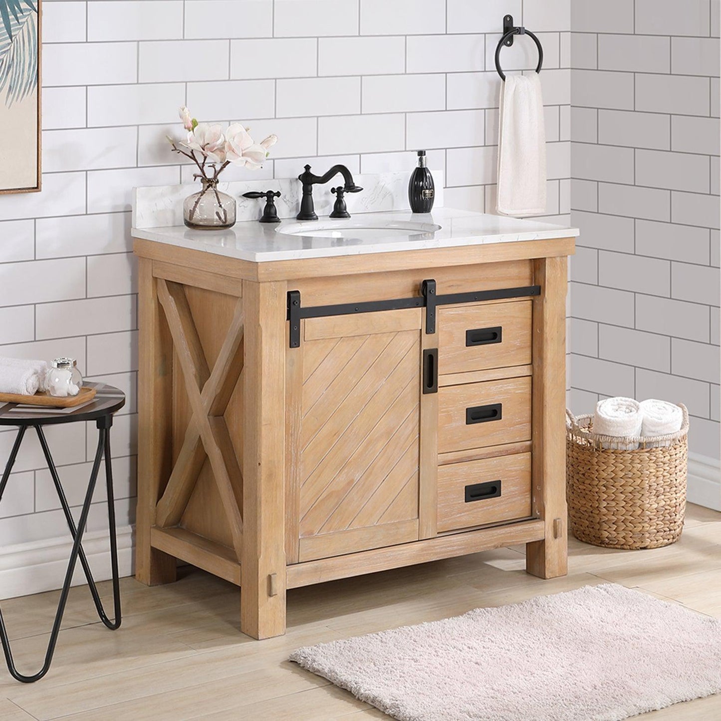 Vinnova Cortes 36" Single Sink Bath Vanity In Weathered Pine Finish With White Composite Countertop