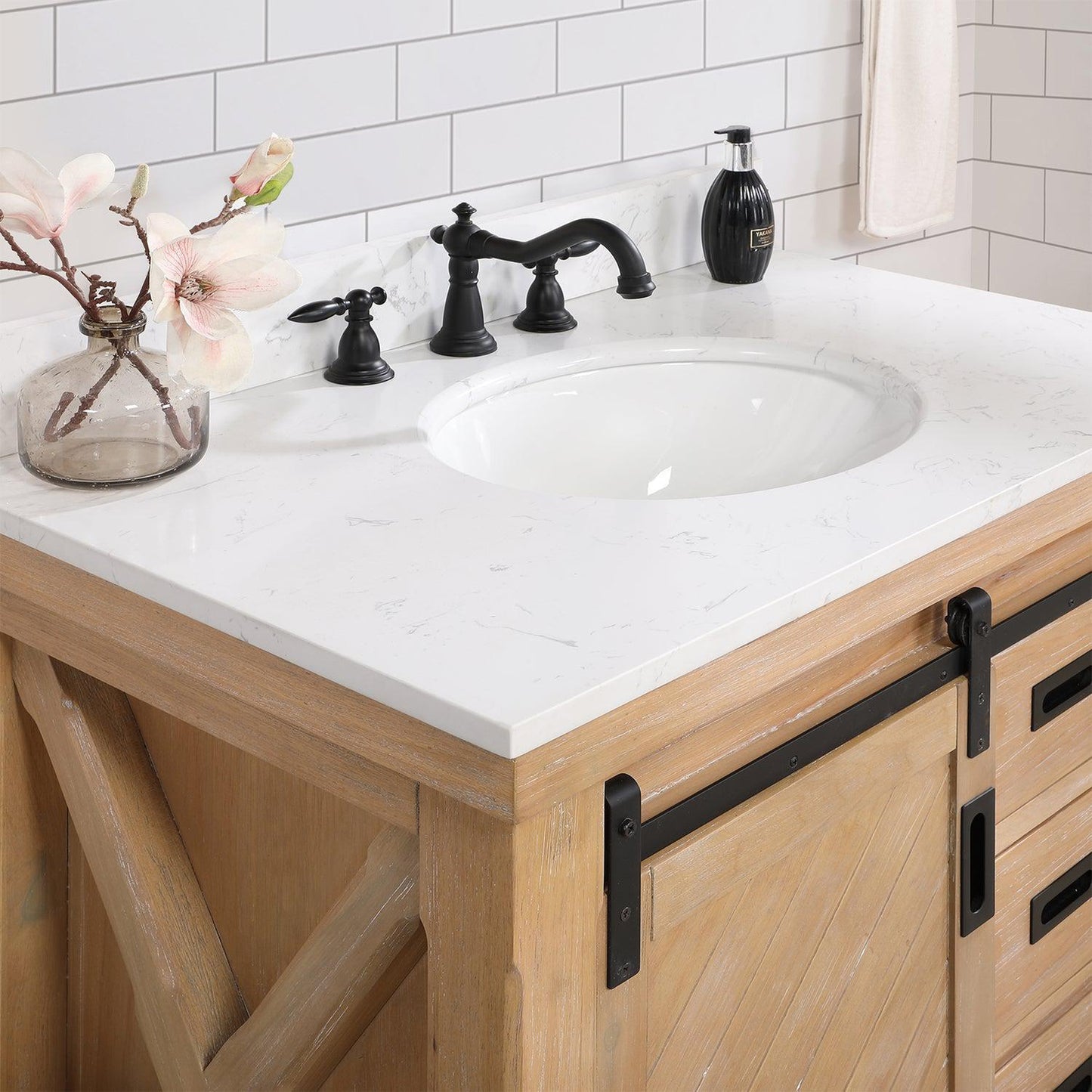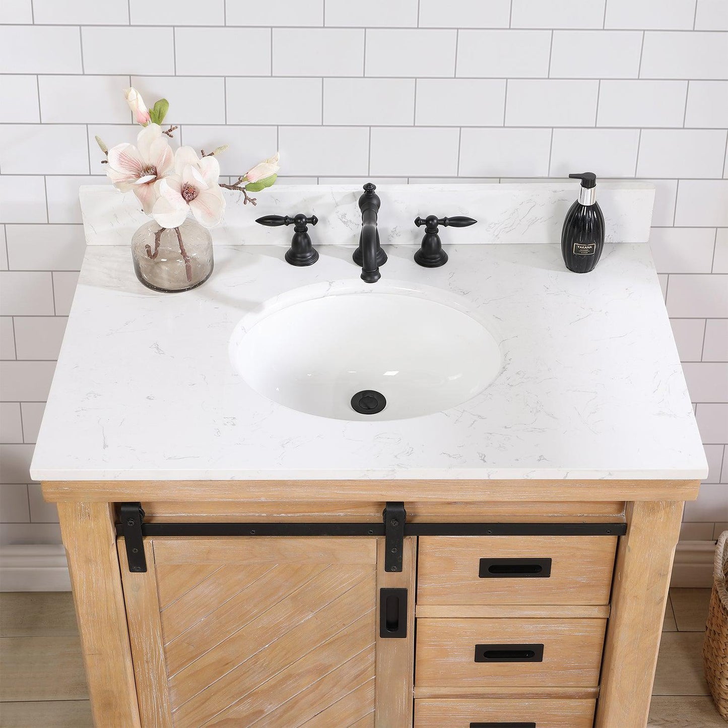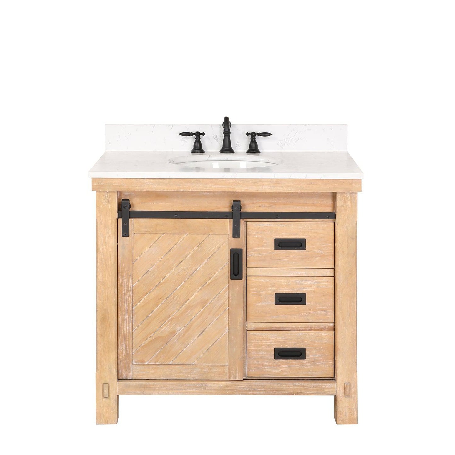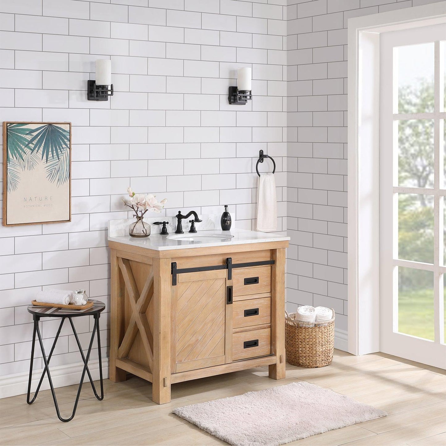 Vinnova Cortes 36" Single Sink Bath Vanity In Weathered Pine Finish With White Composite Countertop
