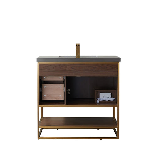 Vinnova Donostia 36" Single Vanity In North American Light Walnut Finish With Grey Composite Armani Limestone Board Stone Countertop Without Mirror