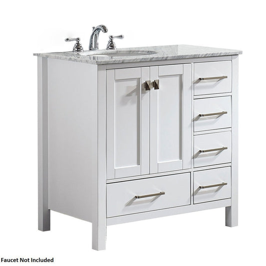 Vinnova Gela 36" White Freestanding Single Vanity Set In White Carrara Marble Top With Undermount Ceramic Sink